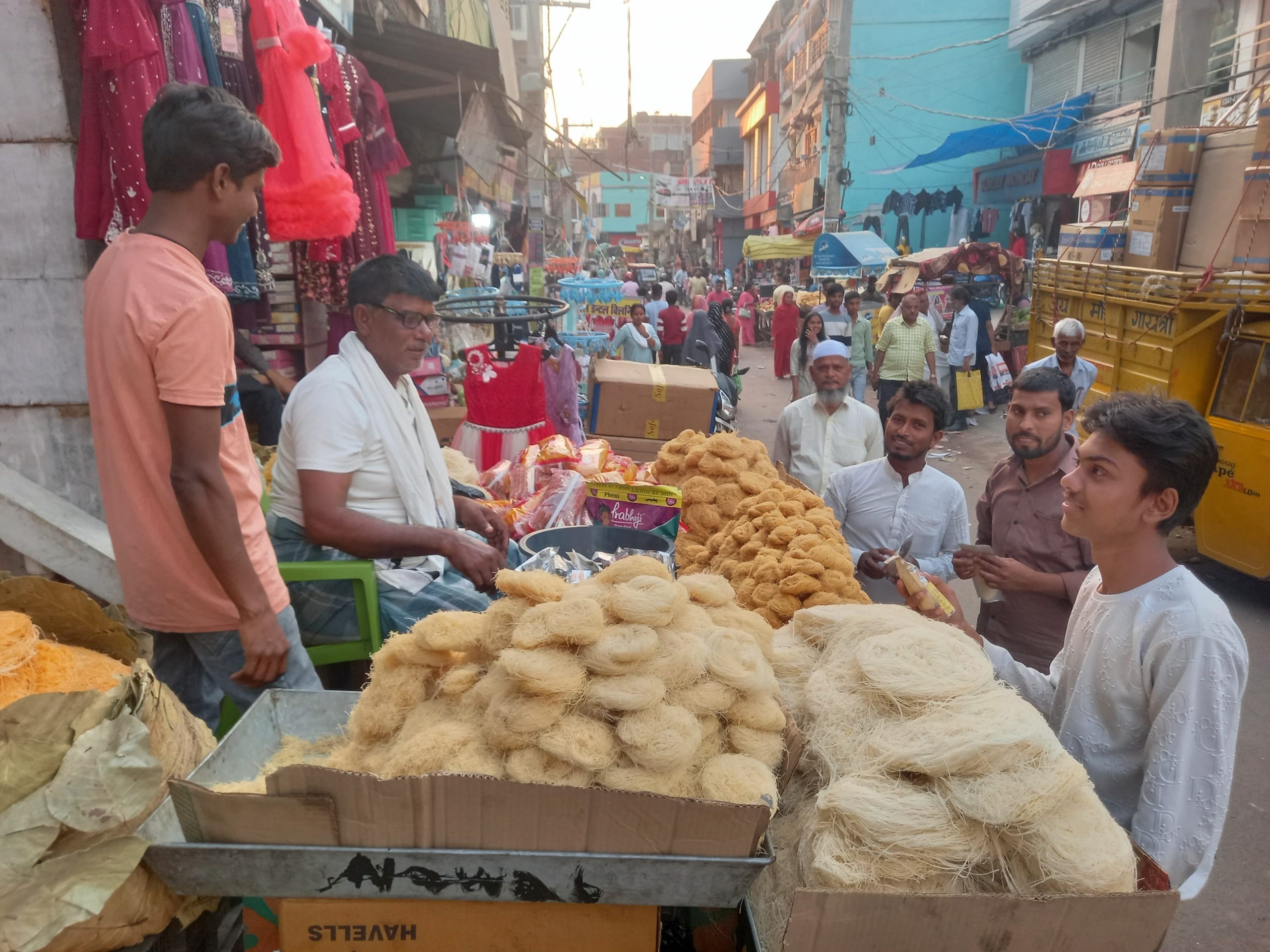जमुई. माह-ए-रमजान जैसे-जैसे अपने अंतिम पड़ाव की ओर बढ़ रहा है उसी रफ्तार से ईद पर्व को लेकर लोग तैयारी में जुट गये हैं. सोमवार को ईद पर्व की खरीदारी को लेकर बाजार में चहल-पहल देखी गयी. सुबह से शाम तक लोग खरीदारी करते दिखे. ईद की नमाज के लिए नये परिधान समेत घरों में बनने वाली लजीज सेवई समेत अन्य पकवानों में प्रयुक्त होने वाली सामग्रियों की खरीदारी लोगों ने खरीदी है.