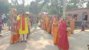 खैरा. प्रखंड क्षेत्र के जीतझिंगोई गांव में राजा बाबा की प्रतिमा की प्राण-प्रतिष्ठा को लेकर मंगलवार को कलश शोभायात्रा निकाली गयी. इसे लेकर मंगलवार सुबह कुंवारी कन्या एवं सुहागवती महिलाओं ने अपने सिर पर कलश धारण कर नगर भ्रमण किया. कलश शोभायात्रा में 251 कन्या एवं सुहागन महिलाओं ने हिस्सा लिया. कलश में जल भरने के बाद विद्वान पंडित यज्ञाचार्य शत्रुघ्न झा एवं उनके सहयोगी कन्हैया पांडे ललन पांडे ने वेद मंत्रोच्चारण किया. ग्रामीणों ने बताया कि राजा बाबा के पिंडी की स्थापना गांव के श्रद्धालुओं ने सन 1921 में की थी. गांव में होने वाले वैवाहिक कार्यक्रम, मुंडन, गृह प्रवेश के दिन इस स्थान पर विशेष रूप से पूजा पाठ होता है. इसी स्थान पर पूरे गांव के सहयोग से इनके लिए एक मंदिर का निर्माण किया गया है. बुधवार के दिन पूरे धार्मिक रस्म के साथ प्रतिमा की प्राण-प्रतिष्ठा की जायेगी. जबकि आज मंगलवार को अखंड राम धुन का शुभारंभ हुआ. कार्यक्रम के मुख्य यजमान आशीष कुमार सिंह, उनकी धर्मपत्नी टूना देवी है. पंडित शत्रुघ्न झा ने लोगों से कहा कि प्राण प्रतिष्ठा एवं अखंड राम धुन के कार्यक्रम से धर्म की जय होती है और अधर्म का नाश होता है. गांव में सुख शांति मिलती है. मौके पर मुकेश सिंह, रणवीर सिंह, कृष्ण रंजन सिंह, दिवाकर सिंह, ओम प्रकाश सिंह, भोला सिंह, राहुल सिंह, विपुल कुमार सिंह, श्रवण सिंह, सत्य प्रकाश सिंह, योग प्रकाश सिंह, कृत्यानंद सिंह सहित गांव के सैकड़ो लोग इस कार्यक्रम में मौजूद थे.