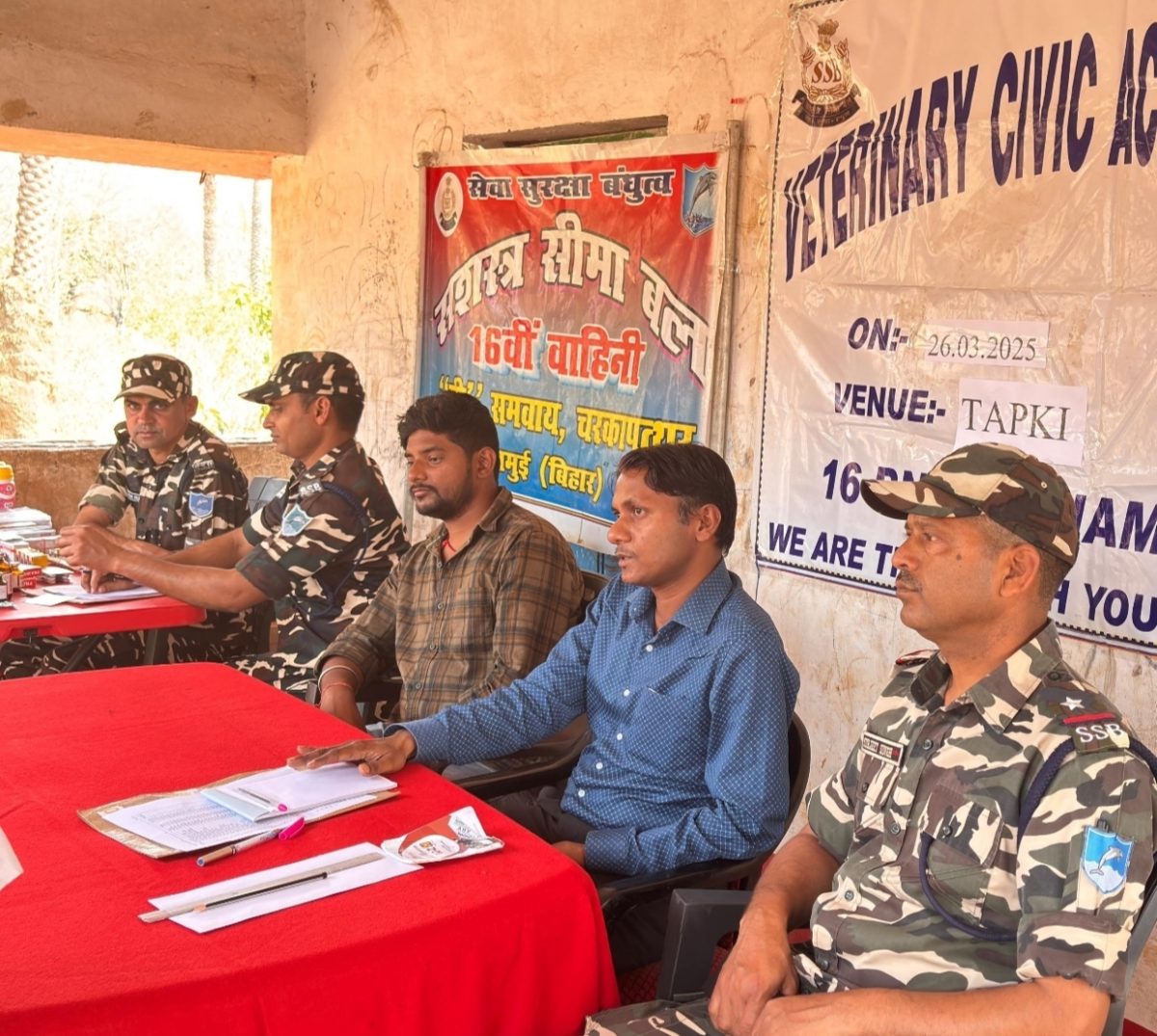 16वीं वाहिनी सशस्त्र सीमा बल की ओर से बुधवार को चरकापत्थर थाना क्षेत्र अंतर्गत छुछनरिया पंचायत के टपकी गांव में पशु स्वास्थ्य शिविर लगाया गया.