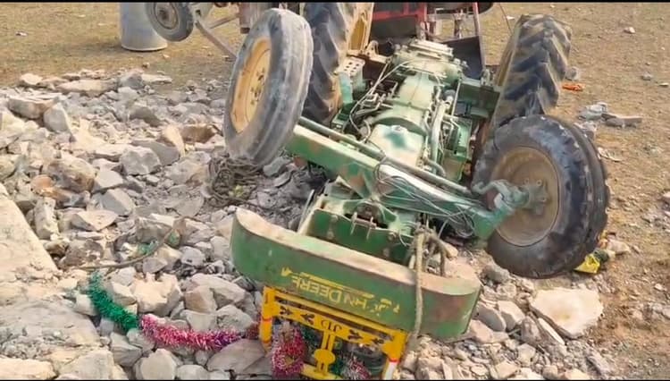 डैम किनारे गड्ढे में पलटा ट्रैक्टर, मिक्चर मशीन के नीचे दबे तीन मजदूर