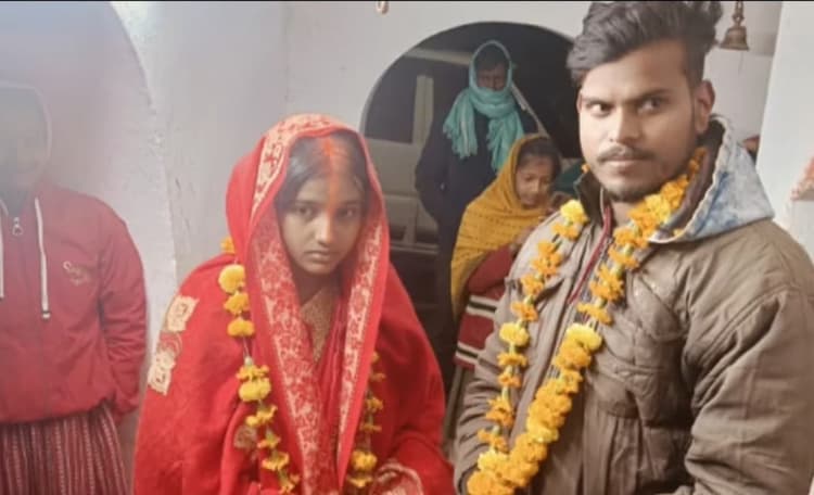 जमुई. सदर थाना क्षेत्र के लखनपुर गांव में रात के अंधेरे में चोरी-छुपे अपनी प्रेमिका से मिलने पहुंचे प्रेमी को ग्रामीणों ने पकड़ लिया, फिर दोनों को मंदिर ले जाकर उनकी शादी करवा दी. इसका एक वीडियो सोशल मीडिया पर वायरल हो रहा है. प्रेमी की पहचान जमुई जिले के खैरा थाना क्षेत्र के प्रधानचक गांव निवासी कन्हैया प्रसाद के पुत्र उमाशंकर कुमार, जबकि उसकी प्रेमिका की पहचान सदर थाना क्षेत्र के लखनपुर गांव निवासी उदय मंडल की पुत्री शिवानी कुमारी के रूप में की गई है. बताया जाता है कि उमाशंकर अपनी प्रेमिका से मिलने उसके घर लखनपुर पहुंचा था. जहां ग्रामीणों ने उन्हें पकड़ लिया और फिर मंदिर जाकर दोनों की शादी करवा दी. उमाशंकर ने बताया कि लखनपुर गांव में उसके रिश्तेदार का घर है, जिसके यहां वह आना-जाना करता था. इसी दौरान उसकी मुलाकात शिवानी से हुई थी. दोनों एक दूसरे से प्रेम करने लगे थे और पिछले तीन सालों से एक दूसरे से बात किया करते थे. दोनों ने अपनी मर्जी से शादी की है. ग्रामीणों ने शादी का वीडियो बनाकर सोशल मीडिया पर पोस्ट कर दिया जो वायरल हो रहा है.