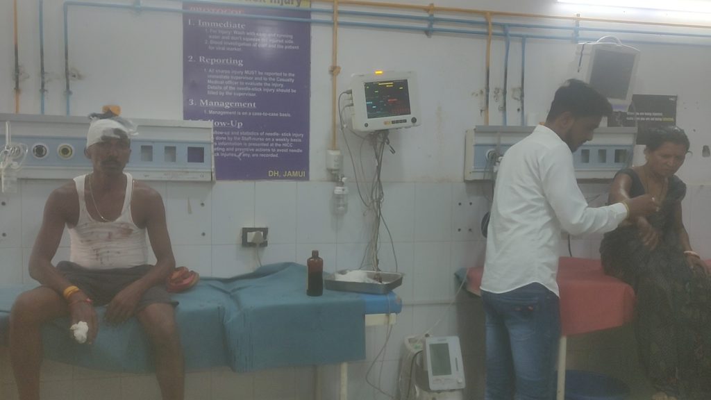 जमुई. जिले के लक्ष्मीपुर थाना क्षेत्र के मेदनीपुर गांव में सोमवार को भूमि विवाद को लेकर दो पक्षों के बीच हिंसक झड़प हो गयी. इसमें एक पक्ष से तीन तथा दूसरे पक्ष से दो कुल पांच लोग घायल हो गये. घायल को सदर अस्पताल लाया गया. घायलों में एक पक्ष से मेदनीपुर गांव निवासी महेश पासवान, उनकी पत्नी मनोरमा देवी तथा पुत्र सोनू कुमार, जबकि दूसरे पक्ष से नीलेश कुमार मंडल व प्रमिला देवी शामिल हैं. दोनों पक्ष द्वारा एक दूसरे पर मारपीट करने का आरोप लगाते हुए स्थानीय थाना में आवेदन दिया गया है. एक पक्ष से घायल मनोरमा देवी ने बताया कि मेरे पड़ोसी उपेंद्र मंडल के साथ भूमि विवाद चल रहा है. सोमवार की सुबह जब मैं अपने खेत में काम कर रही थी तभी उपेंद्र मंडल, गोलु मंडल, उर्मिला देवी, राजेश मंडल तथा शिवम मंडल आया और गाली-गलौज करने लगा जिसका विरोध करने पर उनलोगों ने लाठी-डंडा से हमला कर दिया. बीच-बचाव करने पहुंचे पति महेश पासवान तथा पुत्र सोनू कुमार पर तलवार से हमला कर दिया जिससे हम तीनों घायल हो गये. जबकि दूसरे पक्ष से घायल नीलेश कुमार ने महेश पासवान पर मारपीट शुरू करने का आरोप लगाया है. फिलहाल सभी घायलों का इलाज सदर अस्पताल में चल रहा है. थाना में दिये गये आवेदन के आधार पर पुलिस मामले की छानबीन में जुटी है.