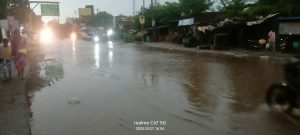 पिछले कई दिनों से लगातार हो रही झमाझम बारिश से चकाई की सड़क पर जमाव हो गया है.