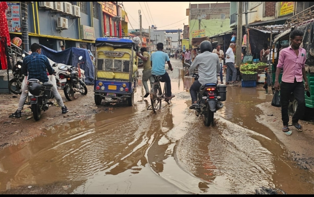 जल निकासी की व्यवस्था नहीं, हल्की बारिश में सड़क पर जलजमाव