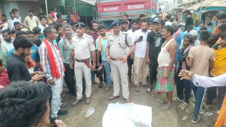 बालू लदे ट्रक की चपेट में आने से महिला की मौत, ग्रामीणों ने किया रोड जाम