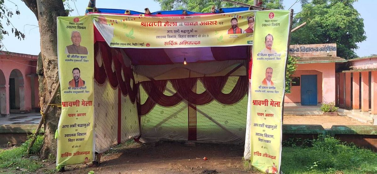 गिद्धौर-झाझा मुख्य मार्ग के किनारे उत्क्रमित मध्य विद्यालय बनझुलिया परिसर के सामने कांवरिया राहत स्वास्थ्य शिविर सुविधा विहीन कैंप बनकर रह गया है.