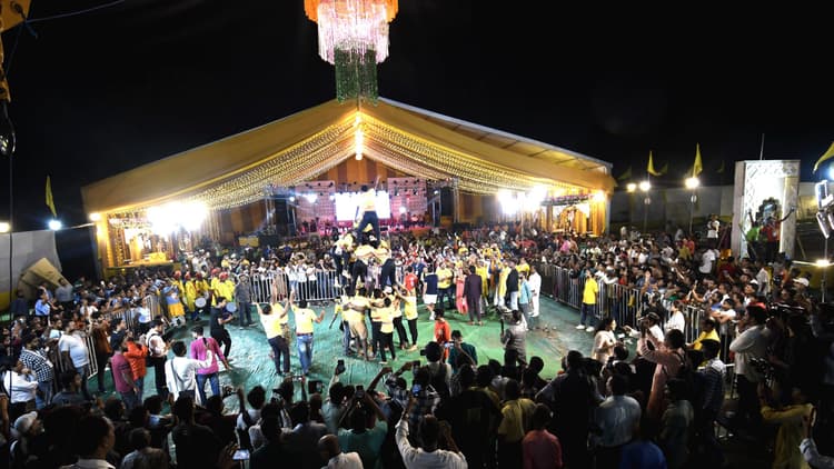 पटना में पहली बार श्री दशहरा ट्रस्ट की ओर से तीन दिवसीय श्री कृष्ण जन्मोत्सव महोत्सव के तीसरे दिन गुरुवार को मिलन हाई स्कूल के ग्राउंड में दही हांडी और प्रतियोगिता का आयोजन किया गया.