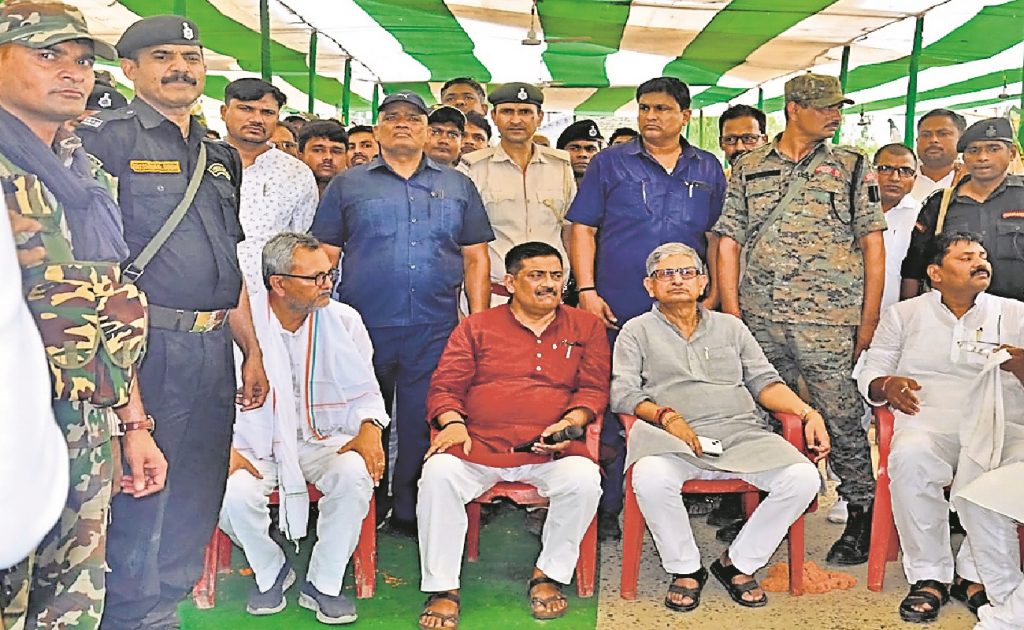 दरभंगा में एक कार्यक्रम के दौरान मंच पर अधिक भीड़ देख राष्ट्रीय अध्यक्ष ललन सिंह, जल संसाधन मंत्री संजय कुमार झा पंडाल में जाकर आगे की कुर्सी पर कार्यकर्ताओं के बीच बैठ गए.