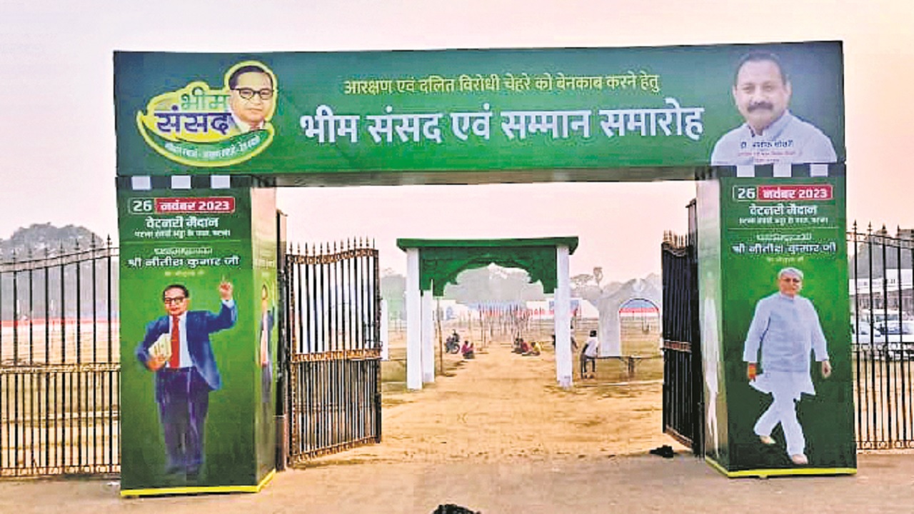 Bhim Sansad In Patna: जदयू रविवार को भीम संसद का आयोजन करने जा रही है. बिहार में पहली बार दलित और महादलित समुदाय को लेकर यह संसद आयोजित है. पटना के वेटनरी कॉलेज मैदान में हो रहे इस कार्यक्रम में करीब दो लाख लोगों के जुटने का दावा जदयू की ओर से किया गया है. बिहार के मुख्यमंत्री नीतीश कुमार भीम संसद के उद्घाटनकर्ता होंगे. मुख्य अतिथि के रूप में जदयू के राष्ट्रीय अध्यक्ष राजीव रंजन सिंह उर्फ ललन सिंह होंगे.बिहार में सियासी समीकरण बदलने के बाद अब जदयू और भाजपा आमने-सामने है. बिहार सरकार लगातार केंद्र पर हमलावर रही है. हाल में ही बिहार में जातीय सर्वे कराया गया और उसके आंकड़े सामने आने के बाद आरक्षण का दायरा भी बढ़ा दिया गया है. नीतीश सरकार भाजपा को आरक्षण विरोधी बताती रही है. संविधान से छेड़छाड़ करने का आरोप भी लगातार लगाया गया है. भीम संसद के आयोजन की वजह भी नीतीश सरकार के कद्दावर नेता सह मंत्री ने बताया है.