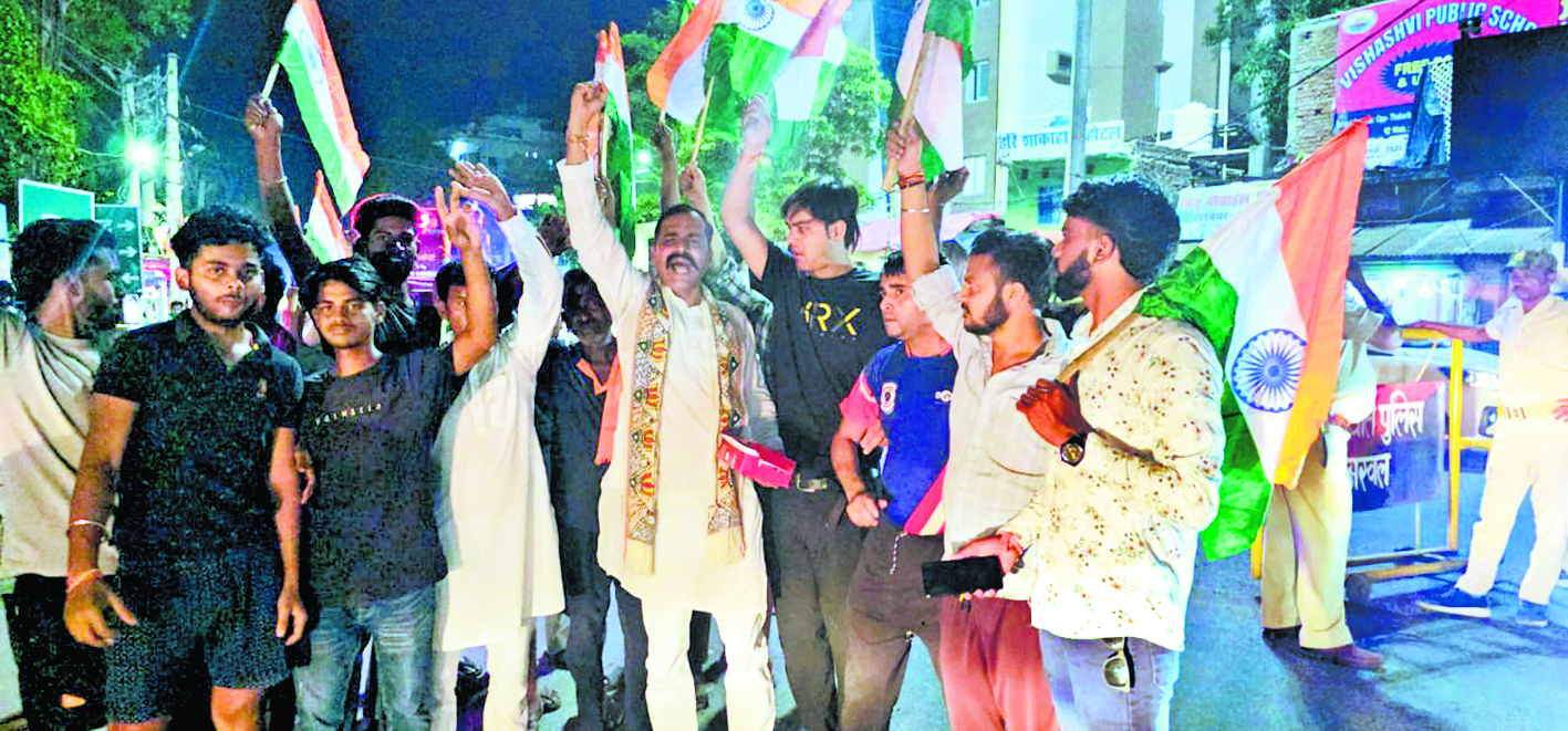 अरवल. भारतीय सेना द्वारा पाकिस्तान पर किये गये सर्जिकल स्ट्राइक ऑपरेशन सिंदूर की सफलता पर अरवल में जश्न का माहौल है. बुधवार को अरवल भगत सिंह चौक पर राष्ट्र के प्रति समर्पित विविध संगठनों के लोगों के साथ आमजन मानस ने देश के प्रति एकजुटता का परिचय देते हुए पटाखे छोड़कर सेना की कार्रवाई का स्वागत किया. सभी ने भारत माता की जय और वंदेमातरम के नारे लगाये. वहीं भाजपा जिला महामंत्री संजीव कुमार ने कहा कि आधुनिक भारत अब आतंकवाद बर्दाश्त नहीं करेगा. पहलगाम की घटना का बदला मात्र 15 दिनों में लिया गया. पीएम नरेंद्र मोदी के नेतृत्व में सेना के एयर स्ट्राइक से पूरे देश में खुशी का माहौल है. भारतीय सेना ने प्रधानमंत्री के वादे को पूरा किया है. ऑपरेशन सिंदूर का नाम देश की महिलाओं को समर्पित है. इस जश्न में संजीव कुमार, नीतीश कुमार, अमर कीर्ति कुमार, मिथिलेश कुमार, विकास कुमार, गुड्डू कुमार, कुंदन कुमार, सूरज कुमार, आयुष कुमार सहित सैकड़ों देशप्रेमी व राष्ट्रप्रेमी मौजूद रहे.