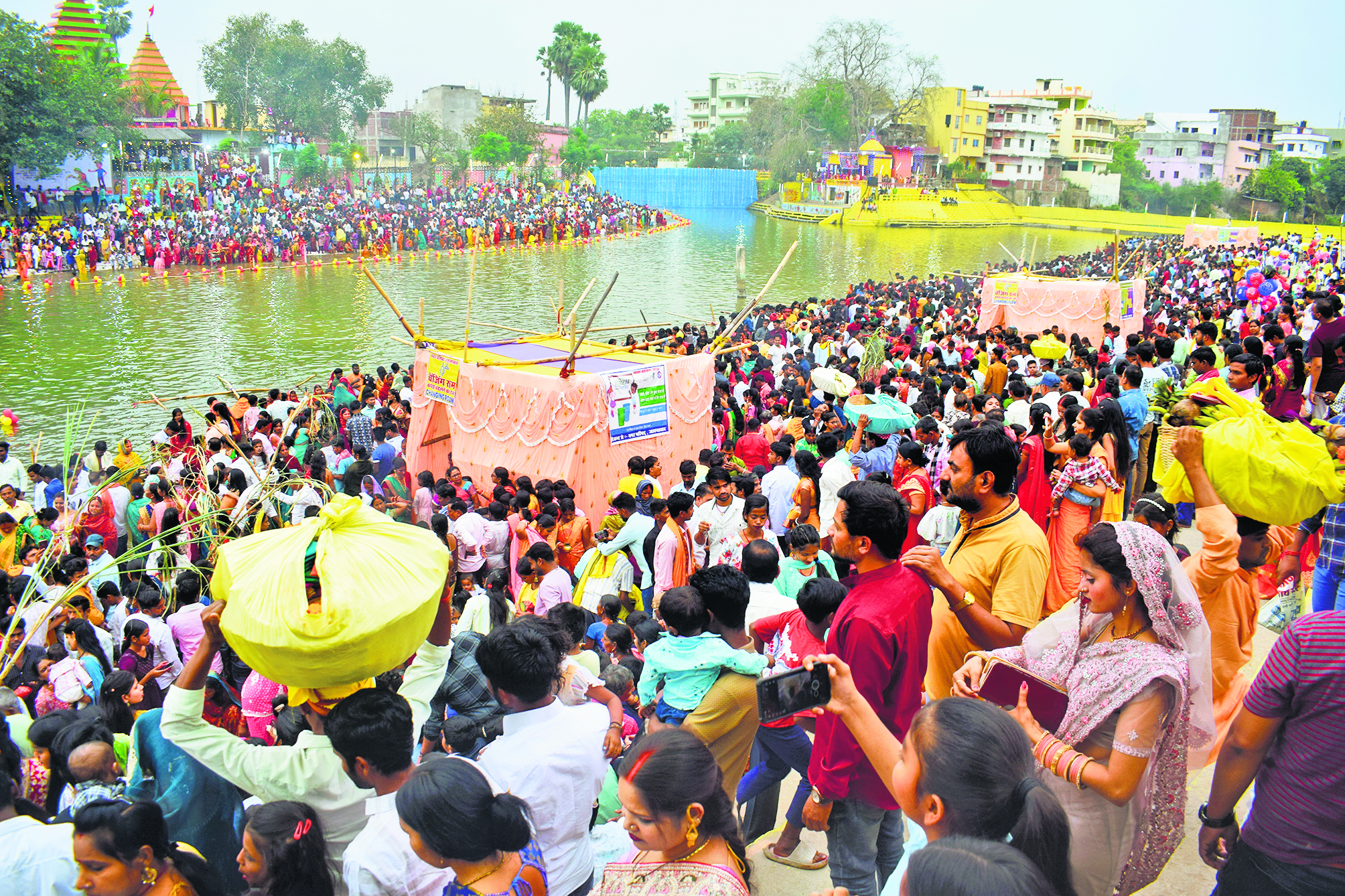जहानाबाद. छठ महापर्व के तीसरे दिन गुरुवार की शाम जिले के विभिन्न छठ घाटों पर व्रतियों ने अस्ताचलगामी सूर्य को अर्घ दिया. इस मौके पर शहर के ठाकुरबाड़ी स्थित दरधा-जमुना संगम तट सहित जिले के विभिन्न छठ घाटों पर श्रद्धालुओं का जनसैलाब उमड़ पड़ा. शहरी क्षेत्र में दरधा जमुना संगम घाट के अलावा सोइया घाट, श्याम नगर घाट, निजामउद्दीनपुर घाट, वभना घाट, कनौदी ठाकुरबाड़ी स्थित तालाब सहित नदी के अन्य घाटों पर छठ पर्व मनाने के लिए श्रद्धालुओं का जत्था शाम चार बजे से ही पहुंचने लगा था. इसके अलावा दक्षिणी सूर्य मंदिर स्थित तालाब, काको सूर्य मंदिर स्थित परिहास और धराऊत चंद्रपोखर सहित जिले के तमाम नदी तालाबों के तट पर छठ पर्व मनाने के लिए दूर-दूर से श्रद्धालु आए हुए थे. औरंगाबाद जिले में जो महत्व देव में छठ पर्व मनाने का है, वही महत्व दक्षिणी सूर्य मंदिर स्थित तालाब में छठ महान छठ पर्व मनाने का माना जाता है. दक्षिणी में छठ पर्व मनाने के लिए जहानाबाद शहरी क्षेत्र सहित जिले के कई इलाके के श्रद्धालु पहुंचे हुए थे. जिले के विभिन्न छठ घाटों पर व्रतियों ने भगवान भास्कर को दूध और जल से अर्घ अर्पण कर आयु, आरोग्यता, यश, धन, संपदा, वैभव, पुत्र, पौत्र और भरे पूरे परिवार की कामना की. आज चैत्र शुक्ल पक्ष की षष्टि तिथि की शाम आद्रा नक्षत्र है. इस नक्षत्र में भगवान भास्कर को अर्घ देने से आयुष्मान योग, सर्वार्थसिद्धि और सर्वार्थ अमृत सिद्धि का योग बनता है. अर्घ देने के बाद व्रतियों ने नदी के तट पर ही पूजा-अर्चना की.