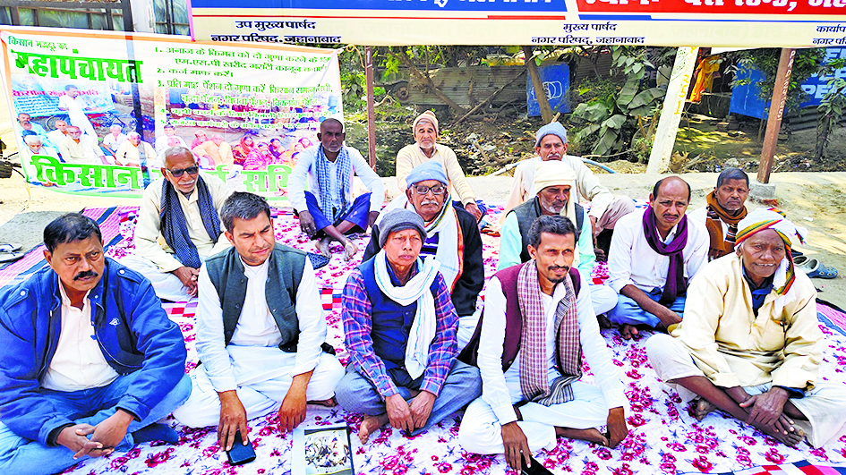 जहानाबाद नगर. किसान संघर्ष समिति का एक दिवसीय महापंचायत समाहरणालय के समीप लगायी गयी. किसान मजदूर के महापंचायत में संगठन के कई नेताओं ने भाग लिया. सभी नेताओं ने एक-एक समस्या पर विस्तार से बात रखी. महापंचायत में किसानों ने फसल खरीद के लिये एमएसपी गारंटी कानून बनाने पर जोर दिया. कर्ज माफ करवाने, पेंशन दुगुना कराने पर भी चर्चा की गयी. किसान नेता मंजय कुमार ने कहा कि किसानों की उक्त मांग सरकार को जल्द मानने होंगे. इन मुद्दों का संघर्ष अंतिम चरण में है. साथ ही कृषि कार्य के लिए नि:शुल्क बिजली मुहैया कराने को लेकर श्यामदेव प्रसाद ने कहा कि बिजली विभाग किसानों को लगतार परेशान कर रहा है. उसके लिए किसान इकट्ठा होकर कड़ा निर्णय लेंगे. वहीं प्रदेश अध्यक्ष सिद्धनाथ कुमार ने कहा कि राजस्व कर्मचारी व रेकड़ रूम और रजिस्ट्री आफिस में हो रहे किसानों से अवैध वसूली पर रोक लगाने के लिये जिलाधिकारी से गुहार लगायी है और किसान के समय सीमा में दस्तावेज उपलब्ध करने के लिये कहा है. किसानों को दस्तावेज लेने के लिए ऑफिस का चक्कर चार-पांच महीने लग जा रहे हैं. किसान नेताओं ने विशेष जोर लगाकर कहा कि किसानो के फसल खरीद गारन्टी कानून नहीं रहने से किसानों के फसल को व्यापारी ओने-पौने दामों में खरीद रहा है जिससे किसानों की फसल उपज की लागत मूल्य भी नहीं मिल रहे हैं. किसानों ने कहा कि भाजपा और जदयू की सरकार किसानों- मजदूरों को पूरी तरह खून-पसीने की कमाई को कौड़ियों के भाव तौल रही है. इन्हीं सब मुद्दों को लेकर डीएम कार्यालय पर महापंचायत रखा गया है. महापंचायत में तपेश्वर प्रसाद सिंह, संगठन अध्यक्ष के अलावे सिद्धनाथ कुमार, वाल्मिकी राय, शयामदेव प्रसाद, विजय सिंह, ऋषि कुमार वर्मा, भागीरथ सिंह, धीरज कुमार, शिवलाल यादव, साधुशरण सिंह, सरजु प्रसाद सिंह, रितिक रौशन कुमार, अजय कुमार, मदन प्रसाद, जनेश्वर यादव, हुलास यादव, भागीरथ सिंह, शशिभूषण कुमार सहित अन्य सदस्य उपस्थित थे.