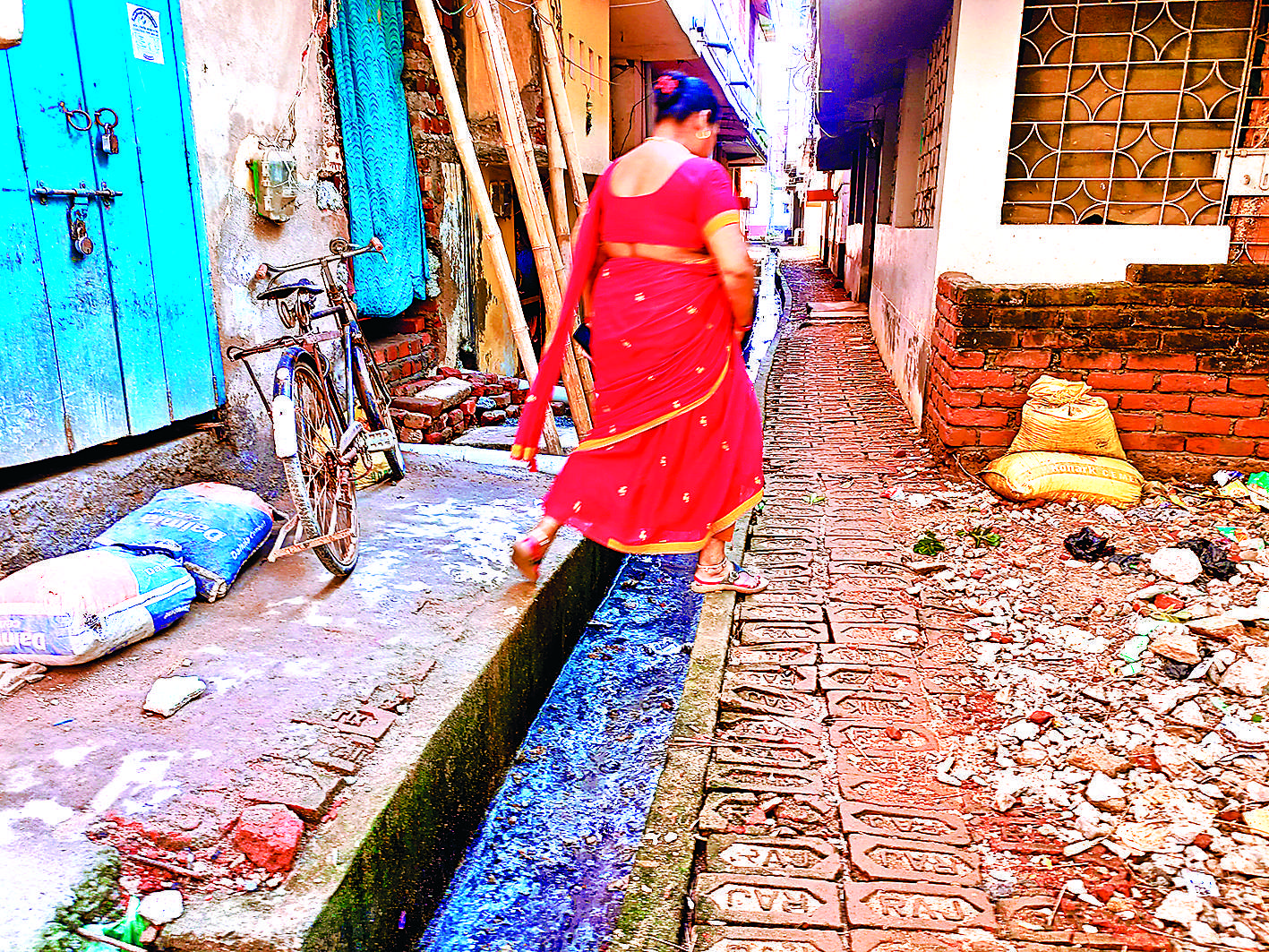 जहानाबाद. ठेकेदार ने नाली-गली का आधा काम कर आधा काम महीनों से छोड़ दिया है जिसके कारण मुहल्ले के लोगों को भारी परेशानी का सामना करना पड़ रहा है. बीच गली में नाली का निर्माण कर उसे छोड़ दिया गया है. नाली पर न तो ढक्कन लगा है और न ही नाली के दोनों और सीमेंटेड ईंट से खरंजा किया गया है जिसके कारण मुहल्ले में रहने वाले लोगों के अलावा इस गली से आने-जाने वाले लोगों को भारी परेशानी का सामना करना पड़ रहा है. इस गली से गुजरने के समय लोगों को बीच में कई बार नाली को फांदना पड़ता है. नाली पर ढक्कन नहीं होने के कारण लोग सीधे स्मूथली गली से होकर नहीं गुजार पाते हैं. उन्हें कभी नाली के उसे पर तो कभी नाली को उसे पर होना पड़ता है जिसके कारण कई बार बच्चे और बुजुर्ग नाली में गिरकर चोटिल हो चुके हैं. सबसे ज्यादा परेशानी बाइक सवारों को होती है. कोई भी बाइक सवार इधर से अपनी बाइक लेकर नहीं गुजार सकता है. दूसरे मोहल्ले के लोग इस ओर से बाइक ले जाना तो दूर पैदल आना-जाना भी बंद कर चुके हैं. इस मोहल्ले में रहने वाले लोगों को इसी खुली नाली के ऊपर से फांद कर आना-जाना पड़ रहा है. मोहल्ले के लोग पैदल तो किसी प्रकार अपने घर आ जाते हैं, किन्तु वे अपनी बाइक को अपने घर से बाहर और बाहर से घर नहीं ला और ले जा सकते हैं. ऐसे में कई लोगों ने तो अपनी बाइक घर में ही बंद कर रखी है तो कइयों ने उसे अपने दोस्त या पहचान वालों के यहां रख छोड़ा है. वे वहीं से बाइक निकाल कर कहीं आते जाते हैं और फिर उन्हें अपनी बाइक वही रखकर अपने घर पैदल लौटना पड़ता है. यह हाल शहर के नगर परिषद क्षेत्र के वार्ड संख्या नौ में मौर्य नगर मोहल्ले का है. एकंगरसराय-जहानाबाद पथ पर शहर के बस स्टैंड के सामने से एक गली प्राचीन देवी मंदिर के पीछे वाली गली से जाकर मिलती है. इस गली में 3 साल पहले आदि गली का काम कराया गया था, जिसमें गली के बीच में नाली का निर्माण और उस पर ढक्कन फिर उसके दोनों ओर पहले ईंट सोलिंग और उसके ऊपर से सीमेंटेड ईट का खरंजा बिछाया गया है. आधी गली में यह काम तीन साल पहले कराया गया था. बाकी बची गली का काम इस साल करीब चार माह पहले शुरू किया गया है, किन्तु गली के बीच में नाली का निर्माण करने के बाद उसे खुला छोड़ दिया गया. नाली के ऊपर ढक्कन नहीं लगाया गया है, जबकि नाली के दोनों ओर ईंट की सोलिंग कर उसे यूं ही छोड़ दिया गया है. ईंट की सोलिंग के ऊपर सीमेंटेड ईंट का खरंजा नहीं बिछाया गया है. इसके कारण बहुत सारी सोलिंग की गयी ईंटें टूट भी चुकी हैं. इस गली का यह हाल पिछले चार महीने से ऐसा ही है, जिसके कारण लोग भारी परेशानी से गुजर रहे हैं. उन्हें आने-जाने में काफी कष्ट हो रहा है. मोहल्ले के कई लोग के घरों में भवन निर्माण का काम चल रहा है. ऐसे में इन लोगों को भवन निर्माण की सामग्री लाने में नाको चने चबा