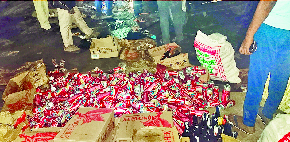 रतनी. अपर पुलिस महानिदेशक विशेष शाखा पटना के निर्देश पर अनुमंडल पुलिस पदाधिकारी के नेतृत्व में चलाये जा रहे समकालीन अभियान के तहत शकुराबाद थाना क्षेत्र के स्थानीय बाजार शकुराबाद से पुलिस ने भारी मात्रा में अंग्रेजी शराब बरामद की है. थाने की पुलिस को गुप्त सूचना मिली थी कि सेरथुआ की तरफ से एक अंग्रेजी शराब लदा मारुति सुजुकी इको गाड़ी शकुराबाद की ओर जा रहा है. सूचना पाकर थाने की पुलिस ने नेहालपुर मोड़ एवं घेजन मोड़ पर नाकाबंदी कर दिया. जैसे ही शराब लदी मारुति सुजुकी गाड़ी शकुराबाद पहुंची और आगे पुलिस की गाड़ी खड़ी देख रघुनाथगंज मोड़ के पास गाड़ी भगाने के चक्कर में बिजली के पोल में जोरदार ठोकर मार दिया. ठोकर इतना जबरदस्त था कि बिजली का पोल टूटकर धाराशायी हो गया. वहीं शराब लदी गाड़ी भी बीच सड़क पर पलट गयी. गाड़ी पलटने से भारी मात्रा में शराब की बोतल एवं केन बियर सड़क पर बिखर गया. गाड़ी पलटता देख पुलिस दौड़ी और ड्राइवर को कब्जे में लेकर इलाज के लिए रामाश्रय प्रसाद सिंह सामुदायिक स्वास्थ्य केंद्र शकुराबाद ले गयी जहां पूछे जाने पर ड्राइवर ने अपना नाम अभय कुमार बताया और वह पटना जिले के संपतचक थाना अंतर्गत शाहपुर गांव का रहने वाला बताया है. थानाध्यक्ष मोहन प्रसाद सिंह ने बताया कि उक्त व्यक्ति के विरुद्ध पटना जिले के गोपालपुर थाना में कांड संख्या 35/21 एवं पत्रकार नगर थाना में कांड संख्या 54/23 दर्ज है. थानाध्यक्ष ने बताया कि जब्त मारुति सुजुकी ईको गाड़ी से स्टेरलिंग रिजर्व बी7 ब्रांड की 750 एमएल की 15 बोतल, रॉयल चैलेंज ब्रांड 750 एमएल की 7 बोतल, किंगफिशर स्ट्रांग 650 एमएल की 8 बोतल, किंगफिशर 500 एम एल की 958 केन बीयर बरामद किया गया है. वहीं गाड़ी पलटने के कारण 15 -16 बोतल अंग्रेजी शराब सहित 500 से अधिक केन बियर क्षतिग्रस्त हो गया. इस बाबत थानाध्यक्ष ने बताया कि इस मामले में उत्पाद अधिनियम के तहत प्राथमिकी दर्ज कर अग्रेत्तर कार्रवाई की जा रही है. शराब धंधेबाज के विरुद्ध छापेमारी अभियान आगे भी जारी रहेगा.