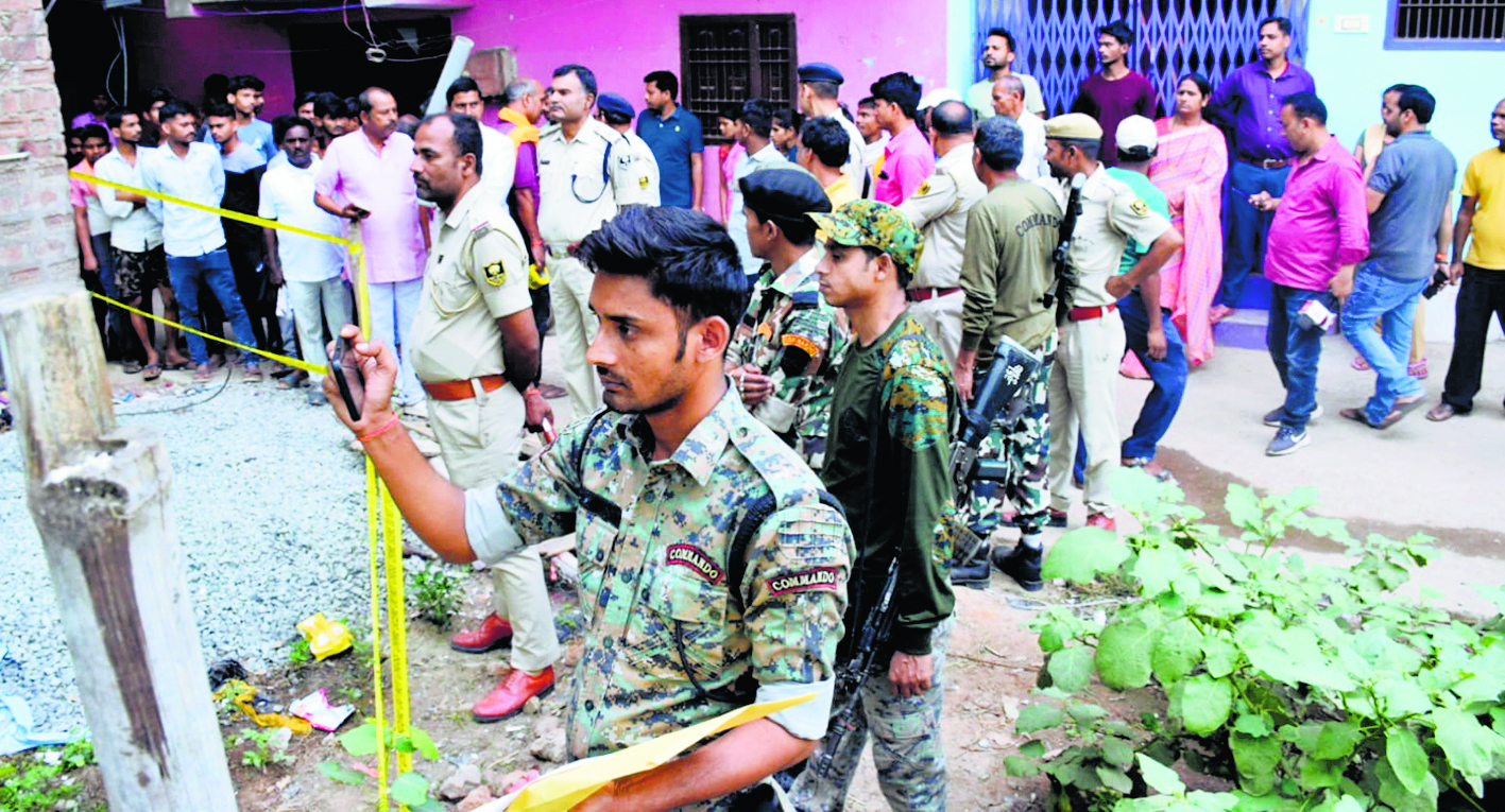 जहानाबाद. नगर थाना क्षेत्र के मौर्य नगर में बुधवार को आर्मी जवान की पत्नी को अपराधियों ने गोली मार दी जिससे वह गंभीर रूप से घायल हो गयी. घटना की जानकारी मिलने के बाद आसपास के लोग जुटे तो डायल 112 की पुलिस को जानकारी दी गयी जिसके बाद पहुंची पुलिस ने गोली से घायल सैनिक शिवशंकर यादव की पत्नी पुष्पा देवी (30 वर्ष) को आनन-फानन में इलाज के लिए सदर अस्पताल लाया गया, जहां गंभीर स्थिति को देखते हुए डॉक्टरों ने प्राथमिक उपचार कर बेहतर इलाज के लिए पीएमसीएच रेफर कर दिया है. महिला को गोली जबड़े में लगी है. हालांकि घटना के कारणों का स्पष्ट पता नहीं चल सका है. घटना की जानकारी मिलने के बाद दल-बल के साथ पहुंचे नगर थानाध्यक्ष दिवाकर कुमार विश्वकर्मा ने घर के पीछे से एक कट्टा और दो कारतूस बरामद किया है. घटना उस वक्त हुई, जब महिला अपने पति और 8 वर्ष की बच्ची के साथ घर में सोई थी. इस संबंध में मकान मालिक मुकेश मालाकार की पत्नी सह जदयू नेत्री रिंकी मालाकार ने बताया कि घर में ऊपरी तल्ले पर थी. इसी क्रम में बुधवार की सुबह करीब 4 बजे अचानक जोरदार आवाज हुई, उठकर देखें तो कुछ पता नहीं चला. कुछ ही देर में नीचे से रोने की आवाज सुनाई दी. फौजी के डेरा का दरवाजा बंद था. जब वह नीचे उतरी तो फौजी ने बताया कि उनकी पत्नी को खिड़की से किसी ने गोली मार दी है. हालांकि पत्नी इशारे में कुछ बात कर रही थी, लेकिन उन्हें कुछ समझ नहीं आया. बाद में फायरिंग की आवाज सुनकर घर में रह रहे अगल-बगल के लोग भी जुट गये. रोने और चिल्लाने की आवाज सुनकर वह नीचे आयी तो देखा कि महिला के चेहरे पर गोली लगी है. इसकी सूचना पुलिस को दी गयी. बताया जाता है कि सैनिक मूल रूप से अरवल जिले के कुर्था थाना के तकियापर गांव के रहने वाला हैं और उनका ससुराल अरवल शहर से सटे रोजापर है और पिछले ढाई-तीन सालों से शहर के मौर्य नगर मुहल्ले में जदयू नेत्री के घर किराये के मकान में रह रहे हैं. जो मंगलवार को ही छुट्टी पर घर आये थे. बताया जाता है कि पति-पत्नी के बीच विवाद होता था. मामले की जांच में जुटी टीम: फौजी की पत्नी को अपराधियों द्वारा गोली मारे जाने के बाद घटनास्थल पर पहुंची पुलिस तमाम बिंदुओं पर बारीकी से छानबीन करने में जुटी है, क्योंकि जिस खिड़की से गोली मारे जाने की बात बतायी जा रही है, वह काफी ऊंचाई पर है और वहां से गोली चलने की बात अटपटा सा लग रहा है. इधर गोलीबारी की घटना के पीछे एवं कांड की तह तक पहुंचने के लिए पुलिस ने एसएफफल टीम का भी सहारा लिया है, जहां अरवल से पहुंची तीन सदस्यीय फॉरेंसिक टीम ने घटनास्थल से कई नमूने एकत्रित किये हैं. गोलीबारी की घटना की जानकारी मिलने के बाद घटनास्थल पर पहुंचे एसडीपीओ संजीव कुमार ने बताया कि आर्मी जवान की पत्नी को किसी ने खिड़की से गोली मारे जाने की बात बताई 