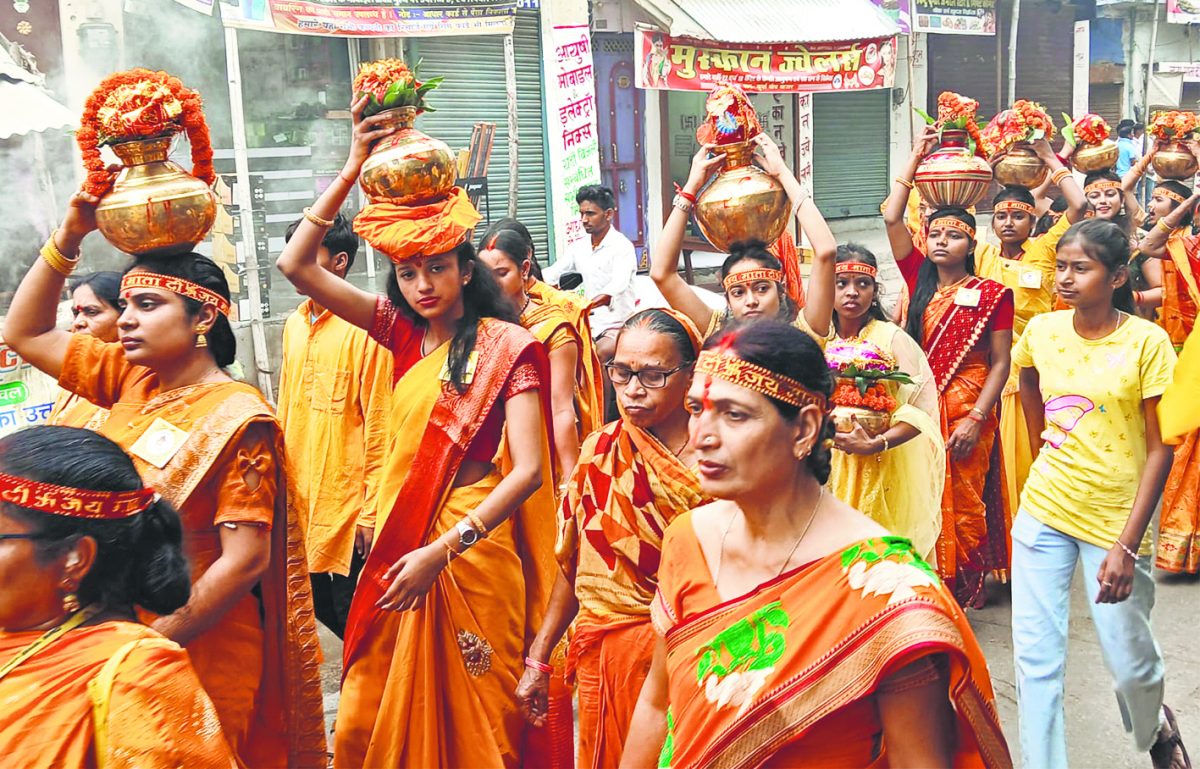 गायत्री माता की जय..., अन्न जहां का हमने खाया, वस्त्र जहां का हमने पहने, वह है प्यारा देश हमारा, देश की रक्षा कौन करेगा... सरीखे गगनभेदी नारों के साथ सोमवार को भव्य कलश यात्रा निकाली गयी.