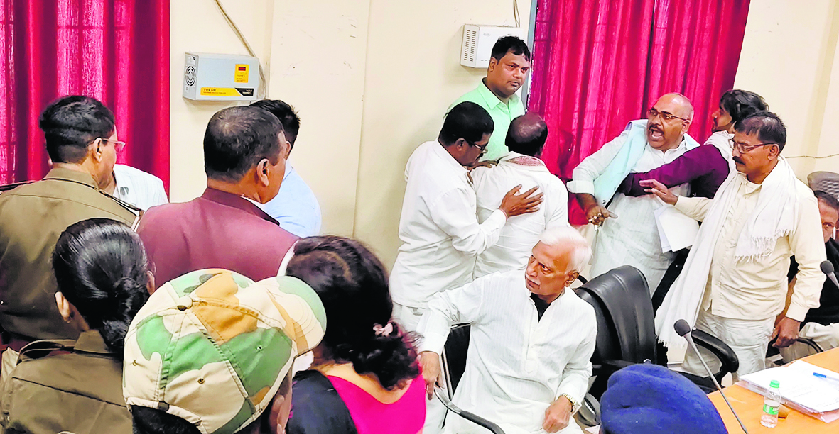 जहानाबाद नगऱ़ नप कार्यालय सभागार में नगर परिषद की सामान्य बैठक हुई. बैठक के दौरान पार्षदों के दो गुटों में नप क्षेत्र के विकास योजनाओं को लेकर आरोप-प्रत्यारोप का दौर आरंभ हुआ जो हाथापाई तक पहुंच गया. आखिरकार पुलिस को बुलानी पड़ी जिसके बाद मामला शांत हुआ. नगर परिषद के सभापति रूपा देवी की अध्यक्षता में विकास योजनाओं की समीक्षा के लिए बैठक बुलाई गयी थी. बैठक में स्थानीय विधायक भी मौजूद थे. बैठक के दौरान मौजूद वार्ड पार्षद एक-दूसरे से भिड़ गये और जमकर हंगामा हुआ. बात बिगड़ते देख तुरंत पुलिस को बुलाया गया, जिसके बाद पुलिस ने किसी तरह से हालात को काबू में किया. नगर परिषद कार्यपालक पदाधिकारी के साथ जिले भर के 33 वार्ड पार्षद भी बैठक में शामिल हुए थे. शुरुआत में यह बैठक सामान्य रूप से चल रही थी लेकिन धीरे-धीरे वार्ड पार्षदों के बीच विकास योजनाओं को लेकर तू-तू मैं-मैं होने लगी. वार्ड पार्षद एक-दूसरे पर आरोप-प्रत्यारोप लगाने लगे और धीरे-धीरे बात इतनी बढ़ गयी कि आपस में गाली-गलौज और हाथापाई शुरू हो गयी. इस दौरान कुर्सियां तक चलने लगीं. मामला बढ़ते देख नगर परिषद के कार्यपालक पदाधिकारी ने नगर थाना पुलिस को सूचना दी, जिसके बाद मौके पर पहुंची पुलिस ने वार्ड पार्षदों को समझा-बुझाकर मामले को शांत कराया. बताते चलें कि नगर परिषद की बैठक में हमेशा से ही हो-हंगामा होते आया है. नगर परिषद के वार्ड सदस्य दो गुटों में बंटे हुए हैं जिसके कारण एक गुट के लोग दूसरे गुट के लोगों पर हर बैठक में आरोप- प्रत्यारोप लगाते रहते हैं. इधर नप के कार्यपालक पदाधिकारी दीनानाथ सिंह ने बताया कि नप की बैठक आवास योजना, नल-जल, शौचालय आदि मुद्दों को लेकर बुलाया गया था लेकिन पार्षद इन मुद्दों को छोड़ अन्य मुद्दों पर आपस में ही चर्चा करने लगे तथा हंगामा करने लगे जिसके कारण नप की बैठक स्थगित करनी पड़ी.