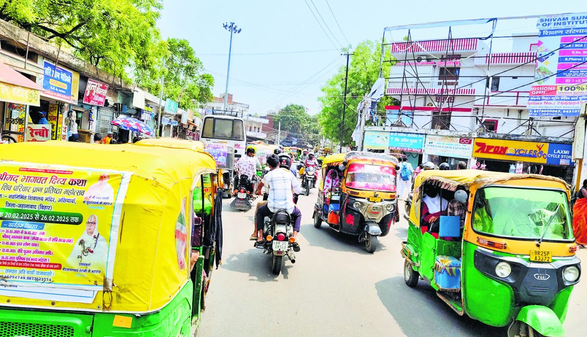 जहानाबाद नगर. शहरी क्षेत्र में बड़े वाहनों का बोझ कम होने के बाद भी ट्रैफिक व्यवस्था में सुधार नहीं हो रहा है. ट्रैफिक व्यवस्था को दुरूस्त करने के लिए प्रशासन द्वारा नये ट्रैफिक नियम बनाये गये थे ताकि चौक-चौराहों पर जाम की समस्या उत्पन्न नहीं हो. विशेष कर शहर में चलने वाला ऑटो के ठहराव के लिए जगह चिह्नित करते हुए बैरिकेडिंग कराया गया था, ताकि ऑटो सड़क पर खड़ा न होकर चिह्नित जगह पर ही खड़ा हो, जिससे कि जाम की समस्या उत्पन्न नहीं हो सके. शुरूआत में एक-दो दिन ऑटो चालकों द्वारा इस नये नियम का पालन तो किया गया लेकिन दो दिन बाद ही नये नियमों को धत्ता बताते हुए ऑटो चालक फिर से पुराने ढर्रे पर अपनी गाड़ियां सड़क पर ही खड़ा करने लगे हैं, जिसके कारण जाम की समस्या तो उत्पन्न हो ही रहा है, पैदल यात्रियों को भी परेशानी का सामना करना पड़ रहा है. ट्रैफिक व्यवस्था को दुरूस्त करने के लिए वत्तीस भंवरिया, अस्पताल मोड़, अरवल मोड़, काको मोड़ पर ऑटो के ठहराव के लिए जगह चिह्नित कर बैरिकेडिंग किया गया था, ताकि वहां ऑटो खड़ी कर पैसेंजर को गाड़ी में बैठाया-उतारा जा सके. हालांकि ऑटो चालकों द्वारा इस व्यवस्था को पूरी तरह से ध्वस्त कर दिया गया है. पहले की तरह फिर से सड़क पर ही गाड़ियां लगाकर पैसेंजर को चढ़ाया-उतारा जा रहा है जिससे परेशानी हो रही है.