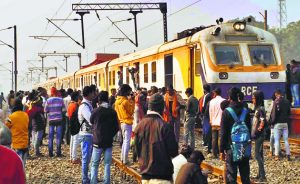 ट्रेनों की कमी से परेशान यात्रियों ने मेमू स्पेशल को रोक किया प्रदर्शन