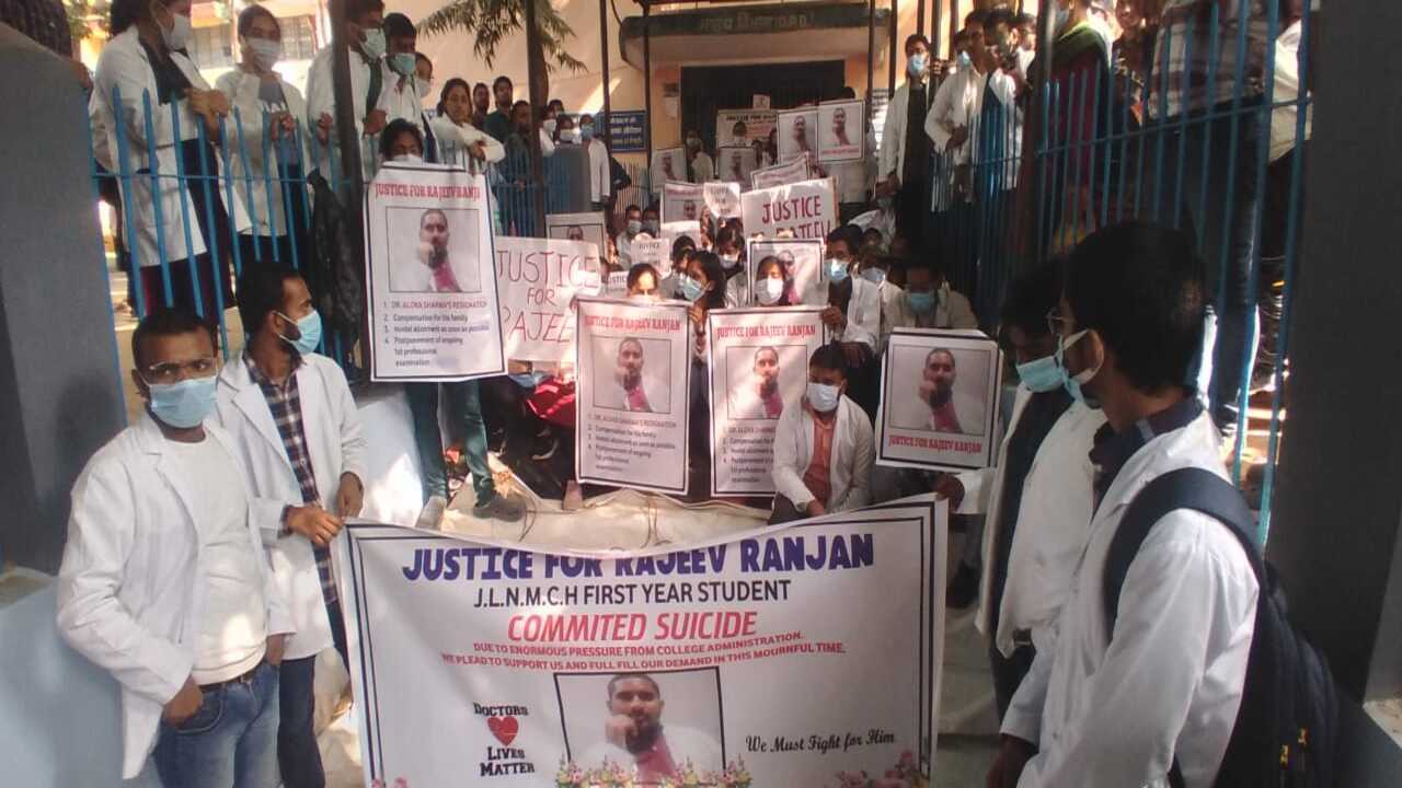 JLNMCH Bhagalpur Protest: भागलपुर के जवाहर लाल नेहरू मेडिकल कॉलेज अस्पताल के एमबीबीएस के प्रथम वर्ष के छात्र राजीव रंजन की आत्महत्या मामले को लेकर मेडिकल कॉलेज के छात्रों का हंगामा लगातार तीसरे दिन भी जारी रहा.