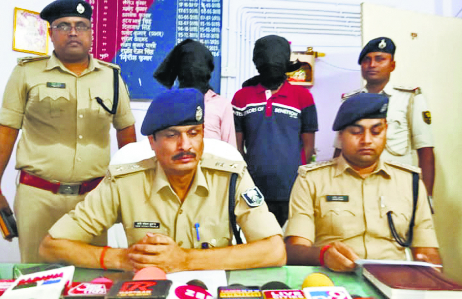 कर्मनाशा. दुर्गावती थाना क्षेत्र अंतर्गत कर्मनाशा पावर ग्रिड के समीप जीटी रोड पर पुलिस ने मंगलवार की सुबह एक पिकअप वैन पर शेटरिंग लकड़ी-बांस की आड़ में ले जा रहे 1111 लीटर शराब बरामद किया तथा पुलिस ने दो शराब तस्करों को भी गिरफ्तार कर लिया. गिरफ्तार तस्करों में बृजेश मौर्या पिता जगजीत लाल ग्राम भरहुआ थाना जनसा जिला वाराणसी व मुदित किशोर रावत पिता दिनेश कुमार रावत ग्राम सहबाजपुर बदायूं थाना कोतवाली जिला बदायूं के निवासी हैं. इस संबंध में एसपी हरिमोहन शुक्ला ने दुर्गावती थाने में प्रेस कॉन्फ्रेंस कर जानकारी दी. एसपी ने बताया कि पुलिस को सूचना मिली कि बांस-बल्ली की आड़ में एक पिकअप में यूपी से शराब भरकर देवहलिया की तरफ लाया जा रहा है. सूचना मिलते ही दुर्गावती पुलिस पावर ग्रिड कर्मनाशा के पास पहुंच गयी और उक्त पिकअप के आने का इंतजार करने लगी. कुछ ही देर बाद बांस बल्ली लदा पिकअप आने पर रपुलिस ने रोक तलाशी ली, तो पिकअप से 1111.6 लीटर विभिन्न ब्रांड की अंग्रेजी शराब बरामद हुई. इस पर पुलिस ने शराब तस्कर बृजेश मौर्या व मुदित किशोर रावत को गिरफ्तार कर लिया तथा शराब सहित पिकअप को जब्त कर पुलिस थाने ले आयी. एसपी ने बताया कि बिहार मध्य निषेध व उत्पाद संशोधन अधिनियम के तहत प्राथमिकी दर्ज कर आगे की कार्रवाई की जा रही है. शराब की खेप बनारस से लोड कर देवहलिया की तरफ जा रहा था. पुलिस टीम में थानाध्यक्ष गिरीश कुमार, एसआइ विनय कुमार सहित पुलिस के जवान शामिल थे.