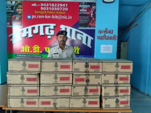 KAIMUR NEWS.रविवार की दोपहर थाना क्षेत्र के अहिवास मुख्य पथ पर स्थानीय पुलिस ने 16 पेटी शराब के साथ एक बाइक को बरामद किया.