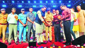 भभुआ कार्यालय. कैमूर पहाड़ी पर स्थित मां मुंडेश्वरी मंदिर तक रोपवे का निर्माण कार्य अगले दो महीने में शुरू हो जायेगा. फॉरेस्ट क्लीयरेंस नहीं मिलने के कारण रोपवे का निर्माण कार्य शुरू नहीं हो पा रहा था. मुंडेश्वरी महोत्सव के उद्घाटन के लिए पहुंचे पर्यटन मंत्री राजू कुमार सिंह ने कहा कि अगले दो महीने में रोपवे का निर्माण कार्य शुरू हो जायेगा. फॉरेस्ट विभाग से रोपवे के निर्माण के लिए क्लीयरेंस मिल गया है, रोपवे के निर्माण में जितनी जमीन फॉरेस्ट विभाग की जा रही है उसके समतुल्य जमीन वन विभाग को दे दी गयी है. जमीन हस्तांतरण होने के बाद बहुत जल्द इस पर काम शुरू हो जायेगा. पर्यटन मंत्री द्वारा मुंडेश्वरी महोत्सव के उद्घाटन के मौके पर रोपवे के साथ मुख्यमंत्री द्वारा प्रगति यात्रा के दौरान इको टूरिज्म को लेकर की गयी घोषणा पर भी कहा गया कि इको टूरिज्म को लेकर डीपीआर तैयार हो गया है, इस पर भी बहुत जल्द काम शुरू हो जायेगा. इको टूरिज्म के तहत पर्यटन स्थलों के विकास के लिए कैमूर जिले में जितने भी पर्यटन स्थल हैं, वहां पर कई कार्य कराये जायेंगे, जिससे पर्यटन को काफी बढ़ावा मिलेगा. उन्होंने कहा कि मुंडेश्वरी मां के दर्शन व पूजा की लंबे समय से इच्छा थी, जो आज पूर्ण हुई है. उन्होंने कहा कि मुंडेश्वरी महोत्सव को और कैसे भव्य रूप दिया जा सकता है, इसे लेकर डीएम सहित अन्य अधिकारी एक वृहद रूपरेखा तैयार करें, ताकि मुंडेश्वरी महोत्सव को और भव्य रूप से मनाया जा सके. = स्वती मिश्रा सहित अन्य कलाकारों ने दी प्रस्तुति दो दिवसीय मुंडेश्वरी महोत्सव का उद्घाटन पर्यटन मंत्री राजू कुमार सिंह द्वारा दीप जला कर किया गया. इस मौके पर पर्यटन मंत्री के साथ डीएम सावन कुमार, एसपी हरिमोहन शुक्ला, मुंडेश्वरी न्यास समिति की सचिव अशोक कुमार सहित अन्य लोग मौजूद रहे. पर्यटन मंत्री राजू कुमार सिंह को धार्मिक न्यास समिति के सचिव अशोक कुमार सिंह द्वारा माता मुंडेश्वरी का चुनरी देकर उनका स्वागत किया. उद्घाटन के बाद राम आयेंगे तो अंगना सजाऊंगी गीत गाकर देश भर में चर्चित हुई स्वती मिश्रा द्वारा अपने कार्यक्रम की प्रस्तुति दी गयी. स्वती मिश्रा द्वारा राम आयेंगे सहित कई अन्य गीत गये, जिस पर मौजूद श्रोता झूम उठे. स्वती मिश्रा ने अपनी गीतों से दर्शकों को झूमने पर विवश कर दिया. इसके अलावा स्थानीय गायिका तनुश्री ने भी भोजपुरी के एक से एक गीत गाकर लोगों को झूमने पर विवश कर दिया. कार्यक्रम के दौरान एडीएम ओमप्रकाश मंडल, डीडीसी ज्ञान प्रकाश, एसडीएम विजय कुमार, एसडीपीओ शिव शंकर कुमार, सामाजिक कार्यकर्ता आलोक कुमार, लोजपा के जिला अध्यक्ष गजेंद्र गुप्ता, जदयू के पूर्व जिला अध्यक्ष चंद्र प्रकाश आर्य सहित कई लोग मौजूद रहे . = सुरक्षा की रही चा
