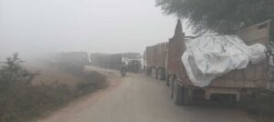 ट्रेलर में खराबी आने से छांव रोड में लगा जाम