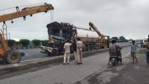 जीटी रोड पर खड़े वाहन में टैंकर ने मारी टक्कर, उड़े परखच्चे