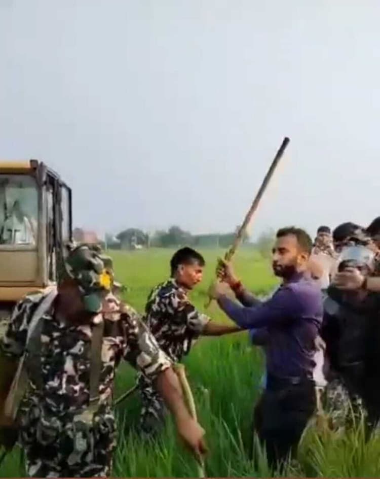सोमवार को एक्सप्रेसवे निर्माण के लिए अधिग्रहीत जमीन को कब्ज में लेने के लिए प्रशासन की ओर से जब काम शुरू किया गया, तो बड़ी संख्या में किसान जेसीबी व पोकलेन मशीन के आगे आकर काम को रुकवाना चाहा. इस दौरान पुलिस एवं किसानों के बीच धक्का मक्की हो रही थी. इसी बीच मोहनिया के एसडीएम अनिरुद्ध पांडे के द्वारा लाठी लेकर किसानों के ऊपर लाठी तानते हुए वीडियो वायरल हो रहा है. अधिग्रहित जमीन पर जिला प्रशासन के द्वारा काम किये जाने और इसका विरोध किए जाने का कई वीडियो सोशल मीडिया पर लोगों द्वारा वायरल किया जा रहा है. इसमें एक वीडियो में मोहनिया एसडीएम के द्वारा लाठी लेकर किसान पर मारने के लिए तानते वीडियो को स्थानीय सांसद सुधाकर सिंह सहित किसान नेताओं ने अपने सोशल मीडिया आइडी से पोस्ट कर बताया कि प्रशासन के द्वारा किसानों पर अत्याचार किया जा रहा है.हालांकि, प्रभात खबर किसी भी वायरल वीडियो की पुष्टि नहीं करता है़किसानों ने तीन किलोमीटर तक फसल को रौंदने का लगाया आरोप