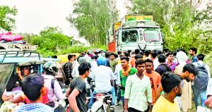 भभुआ सदर. मंगलवार की शाम छह बजे के करीब शहर के सुवरन नदी के समीप स्थित सारंगपुर मोड़ पर तेज रफ्तार एक बाइक सामने से आ रहे ट्रक में जा घुसी. हादसे में बाइक चला रहे एक युवक की घटनास्थल पर ही मौत हो गयी. जबकि, बाइक पर बैठा दूसरा युवक बुरी तरह से घायल हो गया. घटना के बाद ट्रक का चालक गाड़ी छोड़कर मौके से भाग निकला. मृत बाइक सवार युवक थाना क्षेत्र के गोड़हन गांव निवासी हृदया पासवान का 28 वर्षीय बेटा ओमहरी पासवान बताया जाता है. जबकि, घायल युवक भगवानपुर थाना क्षेत्र के उमापुर सरैया गांव निवासी रामचेला बारी का बेटा टोनी बारी है. घटना के बाद मौके पर काफी संख्या में लोगों की भीड़ जुट गयी. इस दौरान लोगों ने सारंगपुर मोड़ पर ब्रेकर बनाने और मृतक के परिजनों को मुआवजा देने को लेकर आक्रोश जताने लगे और सड़क जाम कर दिया. इधर, घटना की जानकारी पर डायल 112 पुलिस टीम मौके पर पहुंच गयी और ट्रक में बाइक सहित घुसे दोनों युवकों को तत्काल बाहर निकाल सदर अस्पताल लेते आयी, जहां इमरजेंसी में रहे डॉ साहिल राज ने ओमहरी पासवान को मृत घोषित कर दिया. घटना के संबंध में मृतक के भाई हरिओम पासवान ने बताया कि उसका भाई भभुआ से बाइक द्वारा शाम को साढ़े पांच बजे घर गोड़हन गांव लौट रहा था. उसके भाई के साथ सरैया गांव निवासी युवक टोनी बारी भी था. आने के क्रम में ही सारंगपुर मोड़ के समीप उसके भाई की बाइक सामने से आ ट्रक में घुस गया. इस घटना में उसके भाई की घटनास्थल पर ही मौत हो गयी. इधर,पुलिस द्वारा युवक के शव को लेकर सदर अस्पताल आने के बाद जुटे परिजन शव को लेकर एसपी आवास पहुंच गये, जहां एसपी आवास पर तैनात सुरक्षा बल के सिपाहियों ने शव लेकर आये परिजनों को समझा बुझा कर वापस शव लेकर सदर अस्पताल भेज दिया. वहां मौजूद थानाध्यक्ष मुकेश कुमार द्वारा शव का पंचनामा करवाते हुए पोस्टमार्टम कराने की तैयारी की जा रही थी. गौरतलब है कि सुवरन नदी के समीप स्थित सारंगपुर मोड़ पर अक्सर हादसे होते रहते है और लोगों को अपनी जान गंवानी पड़ती है. लोगों द्वारा कई बार मोड़ के समीप दोनों तरफ ब्रेकर बनाने की मांग की गयी, लेकिन प्रशासन इस समस्या पर ध्यान नहीं दे रहा है.