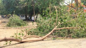 तेज आंधी से पेड़ से टूटीं टहनियां, आवागमन बाधित