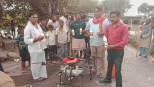 ड्रोन से किया गया नैनो खाद का छिड़काव