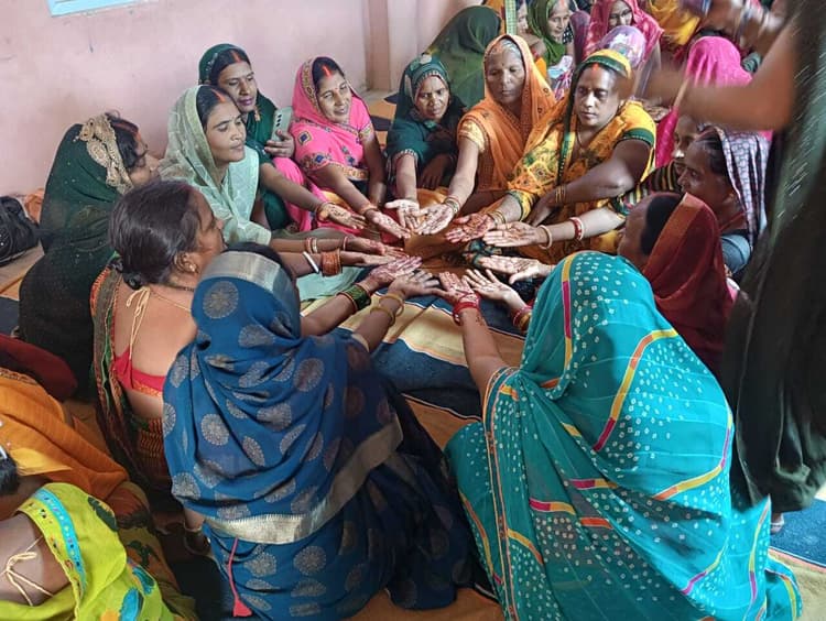 फोटो 14 मेहंदी प्रतियोगिता के दौरान महिलाएं भभुआ नगर. जीविका दीदियों द्वारा रविवार को जिले के विभिन्न प्रखंडों में स्वीप गतिविधि के तहत मतदाता जागरूकता अभियान चलाया गया. इस अभियान के तहत दीदियों ने महिलाओं और युवाओं को मतदान के प्रति जागरूक करते हुए मेहंदी प्रतियोगिता का आयोजन किया. मेहंदी प्रतियोगिता के दौरान प्रतिभागियों के हाथों पर मतदान से जुड़े संदेश जैसे “ पहले मतदान, फिर जलपान और मेरा वोट, मेरा अधिकार आदि स्लोगन लिखे गये. कार्यक्रम का उद्देश्य आगामी चुनावों में शत-प्रतिशत मतदान सुनिश्चित करना है. इस अवसर पर जीविका दीदियों ने सामूहिक रूप से मतदान करने की शपथ भी ली और लोगों को निर्भय होकर अपने मताधिकार का प्रयोग करने के लिए प्रेरित किया. प्रखंड स्तर पर बीडीओ, सीडीपीओ, पंचायत प्रतिनिधि और चुनाव विभाग के कर्मी भी उपस्थित रहे.