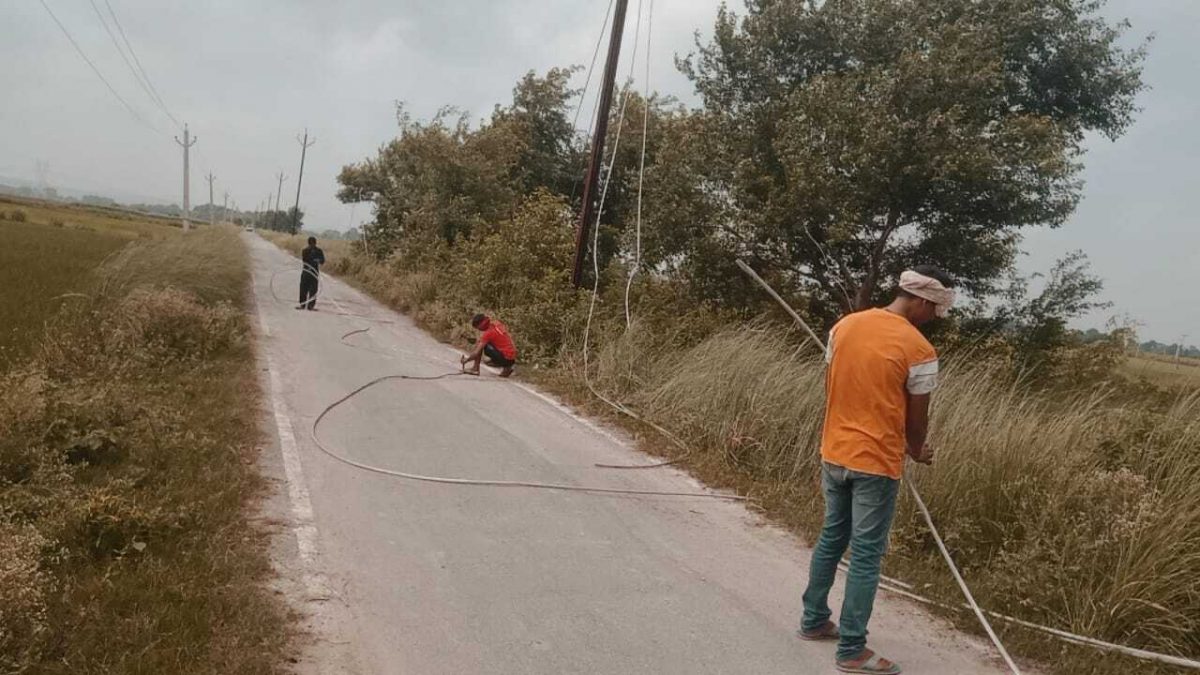 चोरों ने बिजली पोल से तार काटा