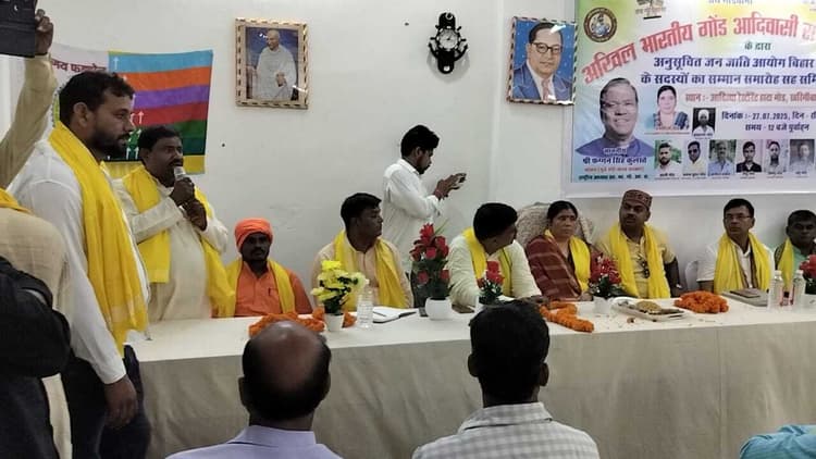 चैनपुर. थाना क्षेत्र के खारिगावां में रविवार को अखिल भारतीय गोंड आदिवासी संघ, कैमूर के तत्वावधान में समीक्षा बैठक आयोजित की गयी. अध्यक्षता मजनू गोंड व संचालन कपिल मुनि गोंड ने किया. वहीं, कार्यक्रम में संरक्षक की भूमिका बाली गोंड ने निभायी. बैठक में मुख्य अतिथि के रूप में राज्य सरकार अनुसूचित जनजाति आयोग की सदस्य प्रेमशिला गुप्ता गोंड रहीं. वहीं, विशिष्ट अतिथि के रूप में अर्जुन प्रसाद गोंड जूना प्रसाद गोंड भी मौजूद रहे. प्रेमशिला गोंड ने बताया कि इस कार्यक्रम का मुख्य उद्देश्य अनुसूचित जनजाति समाज को आगे लेकर जाना है़ उनकी समस्याओं का समाधान करना है. उन्होंने कहा कि अनुसूचित जनजाति समाज के लोगों का जाति प्रमाण पत्र सहित अन्य प्रमाण पत्र निर्गत करने में पदाधिकारी आनाकानी करते हैं. साथ ही थाने में एससी-एसटी लोगों के आवेदन देने पर लेने से आनाकानी किया जाता है. उन्होंने कहा कि यह समस्या लगभग सभी जगह पर देखने को मिल रही है. जिसे दूर करना बहुत जरूरी है. साथ ही उन्होंने कहा कि यह समाज आजादी के इतने साल बाद भी काफी पिछड़ा है, जिसे आगे लेकर जाने की जरूरत है़ इससे इस समाज के लोग भी सभी लोगों के साथ बराबरी का जीवन जी सकें. इस मौके पर राजकुमार गोंड, महेंद्र गोंड, बलवंत गोंड, सत्येंद्र गोंड, देवेंद्र गोंड, पंकज गोंड, चंदन गोंड सहित काफी संख्या में अनुसूचित जनजाति समाज के लोग मौजूद रहे.