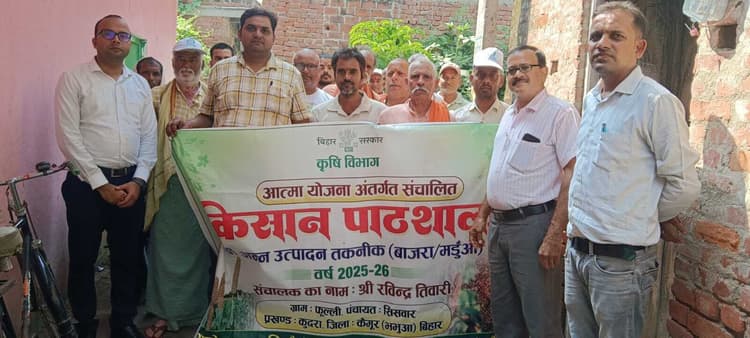 प्रखंड क्षेत्र के ग्राम पंचायत सिसवार अंतर्गत फुली गांव में मंगलवार को खरीफ किसान पाठशाला का तृतीय सत्र आयोजित किया गया. यह पाठशाला एक हेक्टेयर में लगी बाजरे की खेती के संचालक किसान रवींद्र तिवारी के प्रक्षेत्र पर आयोजित की गयी. कार्यक्रम में जिला कृषि पदाधिकारी विकास कुमार और उप परियोजना निदेशक आत्मा नवीन कुमार सिंह ने फसल का निरीक्षण किया. अधिकारियों ने बाजरे और धान की खेती में लगने वाले कीट और रोग, उनके प्रबंधन और रोकथाम के तरीकों के बारे में किसानों को विस्तार से जानकारी दी. खाद और उर्वरक की उपलब्धता को लेकर किसानों में चर्चा हुई, जिस पर जिला कृषि पदाधिकारी ने भरोसा दिलाते हुए कहा कि जिले में खाद की भरपूर उपलब्धता है. उन्होंने बताया कि आत्मा योजना द्वारा आयोजित किसान पाठशालाओं के माध्यम से किसानों को विभिन्न परामर्श प्रदान किए जाते हैं. किसानों को अन्य फसलों में रोग और कीट प्रबंधन के लिए भी सुझाव दिये गये और कृषि विज्ञान केंद्र अधौरा के नीरज कुमार चौधरी का मोबाइल नंबर 9472916435 साझा किया गया, जिससे वे अतिरिक्त जानकारी ले सकते हैं. इसके अलावा धान में लगने वाले शीट ब्लॉस्ट रोग और उसकी दवा के बारे में भी जानकारी दी गयी. पाठशाला में क्षेत्र के चयनित किसान बढ़-चढ़कर शामिल हुए. कार्यक्रम का संचालन प्रखंड तकनीकी प्रबंधक राहुल कुमार और मनीष कुमार सिंह ने किया. इसमें अशोक कुमार सिंह, बृजेश तिवारी, बिजेंद्र सिंह सहित कई अन्य किसान उपस्थित रहे.डिस्क्लेमर: यह प्रभात खबर समाचार पत्र की ऑटोमेटेड न्यूज फीड है. इसे प्रभात खबर डॉट कॉम की टीम ने संपादित नहीं किया है