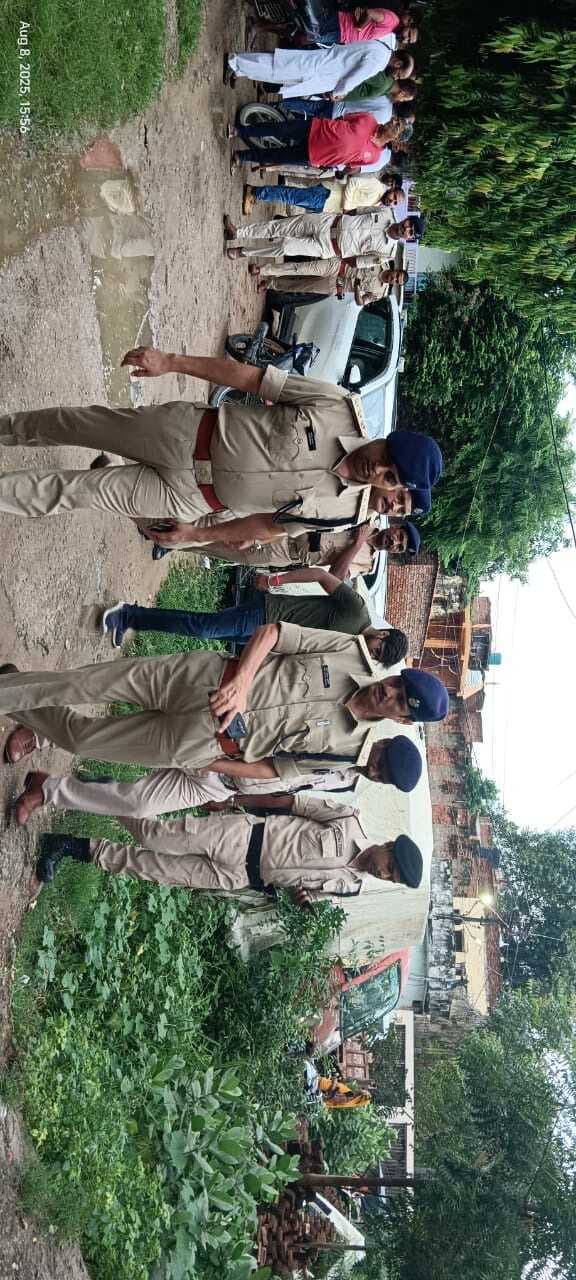 घटनास्थल पर जांच के लिए पहुंचे एसपी, डीएसपी व भारी संख्या में पुलिस बल