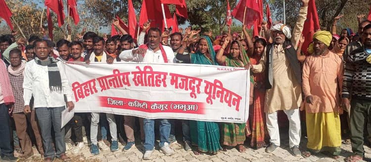 बिहार प्रांतीय खेतिहर मजदूर यूनियन अंचल कमेटी भभुआ द्वारा सोमवार को अपनी 12 सूत्री मांगों को लेकर प्रखंड कार्यालय भभुआ में बीडीओ के समक्ष धरना व प्रदर्शन किया गया.