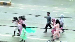 गुरुवार दोपहर मौसम ने एक बार फिर पलटी मारी. इस दौरान दोपहर एक बजे लगभग 65 किमी की रफ्तार से चली आंधी-तूफान और हल्की बारिश ने जमकर तबाही मचायी. तेज आंधी तूफान से कई जगह पेड़ टूटने के साथ ही टिन शेड व करकट सहित होर्डिंग्स भी उड़ते देखे गये.