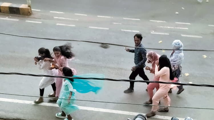 भभुआ सदर. गुरुवार दोपहर मौसम ने एक बार फिर पलटी मारी. इस दौरान दोपहर एक बजे लगभग 65 किमी की रफ्तार से चली आंधी-तूफान और हल्की बारिश ने जमकर तबाही मचायी. तेज आंधी तूफान से कई जगह पेड़ टूटने के साथ ही टिन शेड व करकट सहित होर्डिंग्स भी उड़ते देखे गये. तेज आंधी तूफान से शहर में कई स्थानों पर पावर ब्रेक भी हुआ, जिसके चलते शहर में बिजली गुल रही. जबर्दस्त आंधी से ज्यादातर इलाकों में शाम तक बिजली नहीं आ पायी थी. दरअसल, उत्तर-पश्चिम हवाओं का दबाव बनने के कारण गुरुवार सुबह से ही आसमान में घने बादलों ने अपना डेरा डाल दिया था. इसके बाद दोपहर एक बजे अचानक अंधेरा छाने लगा और धूलभरी तेज आंधी शुरू हो गयी. कुछ ही देर में आंधी ने तूफान का रूप ले लिया. करीब 60 से 65 किमी प्रति घंटे की रफ्तार से चले आंधी तूफान से कई इलाकों में जगह-जगह टिन शेड, पोस्टर-बैनर और होर्डिंग टूट कर गिर गये. तेज आंधी की वजह से भभुआ-चैनपुर रोड में दतियांव मोड के समीप बीच सड़क पर ही भारी भरकम यूकेलिप्टस का पेड़ गिर गया, जिसके चलते आवागमन अवरुद्ध हो गया और गाड़ियां जाम में फंस गयी. हालांकि, इस दौरान जहां पेड़ गिरा था वहां बगल से आवागमन का रास्ता था, लेकिन एकतरफा ट्रैफिक होने से लोगों को खासकर वाहन चालकों को काफी दिक्कत हुई. इसके अलावा भभुआ मोहनिया रोड, शहर के देवीजी रोड में भी तेज आंधी से पेड़ टूट कर सड़क पर गिर गये. कई जगहों पर कुछ पेड़ों के साथ भारी भरकम डालियां भी तेज हवा से जमीन पर आ गिरी. = अधिकतम पारा लुढ़का, न्यूनतम चढ़ा आंधी और हल्की बारिश से अधिकतम पारा बुधवार की तुलना में गुरुवार को लुढ़क गया. वहीं, न्यूनतम तापमान में वृद्धि दर्ज की गयी. गुरुवार को अधिकतम तापमान सामान्य यानी 37.0 डिग्री सेल्सियस रहा, जबकि न्यूनतम पारा 22.0 डिग्री सेल्सियस तक आ गया.