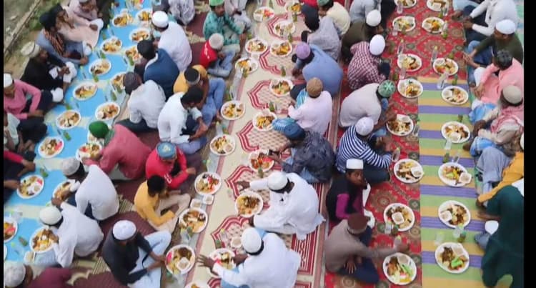 फोटो 3 इफ्तार पार्टी में शामिल रोजेदार कर्मनाशा. दुर्गावती थाना क्षेत्र के जामा मस्जिद सरैया के प्रांगण में शुक्रवार की शाम नूरी नौजवान कमेटी की ओर से इफ्तार पार्टी का आयोजन किया गया. इसमें सरैयां, खजुरा, नौबतपुर आदि गांव के काफी संख्या में लोगों ने भाग लिया. दरअसल, इस समय रमजान का महीना चल रहा है और रमजान के महीने में मस्जिदों में तराबी की नमाज अदा की जा रही है. मस्जिदों में काफी संख्या में लोग नमाज अदा कर रहे हैं और जैसे-जैसे ईद का दिन नजदीक होता जा रहा है, वैसे वैसे इफ्तार पार्टी का भी आयोजन बढ़ता जा रहा है. इसी क्रम में शुक्रवार को जामा मस्जिद सरैया के प्रांगण में इफ्तार पार्टी का आयोजन किया गया, जिसमें काफी संख्या में लोग शामिल हुए. इफ्तार के पश्चात लोगों ने मस्जिद में नमाज अदा की और मुल्क की हिफाजत व तरक्की के लिए दुआ की. इस दौरान हाफिज रियाज अहमद, हुसैन अली, आजाद अली, तसउअर अली, इरफान अली, सलामत, अजीम अली, शाहिद सहित काफी संख्या में लोग मौजूद रहे.