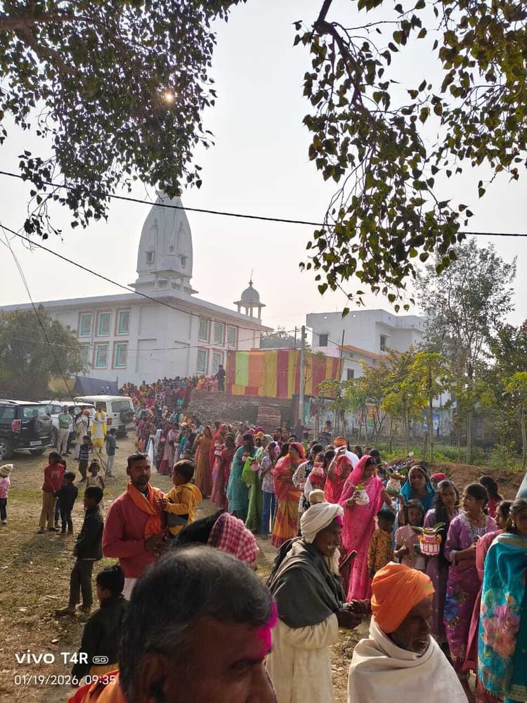 फोटो 8 गोरिया नदी पर हवन पूजन करते श्रद्धालु 9 कलश यात्रा में शामिल महिला श्रद्धालु # हर हर महादेव के जयघोष से गूंजा कामाख्या धाम # कलशयात्रा में आकर्षण का केंद्र रहे घुड़सवार नुआंव. सोमवार की सुबह मां कामाख्या यज्ञ समिति के तत्वावधान में नौ दिवसीय श्री चंडी महायज्ञ का आगाज कलशयात्रा के साथ हुआ. कलशयात्रा में शामिल सैकड़ों श्रद्धालुओं के हर हर महादेव के जयघोष से कामाख्या धाम गुंजायमान हाे उठा. इस दौरान कलशयात्रा की मेजबानी कर रहे हाथी व घुड़सवार बच्चों के बीच आकर्षण का केंद्र बने रहे. श्रद्धालुओं द्वारा कामाख्या मंदिर यज्ञ स्थल से निकाली गयी कलशयात्रा सबसे पहले गांव के पुरानी कोट दुर्गा मंदिर होते नईकोट महावीर मंदिर प्रांगण पहुंची, जहां भक्तों द्वारा बजरंगबली के दर्शन-पूजन के बाद पुनः कामाख्या मंदिर होते जयघोष लगाते लगभग तीन किलोमीटर की पैदल यात्रा कर गोरिया नदी के तट पहुंचे. यहां नदी के तट पर पहुंचे श्रद्धालुओं सहित आचार्य कमलेश तिवारी व मदन जी द्वारा घंटों पूजा अर्चना के बाद नदी से जल लेकर यज्ञ स्थल के लिए चल पड़े. श्रद्धालु माथे पर कलश लिये हाथी-घोड़े, बैंड-बाजे के साथ यज्ञ स्थल पर पहुंचे. बताते चले नौ दिनों तक चलने वाले इस महायज्ञ में सुबह सात बजे से दस बजे तक अशोक जी बिहारशरीफ द्वारा राम चरित नवाह परायण कथा, आठ बजे से 12 बजे तक आचार्य पंडित कमलेश त्रिपाठी (काशी) द्वारा श्री चंडी महायज्ञ पाठ व हवन पूजन, दस बजे से एक बजे तक वृंदावन से आये कलाकारों द्वारा रासलीला का मंचन, दोपहर दो बजे से शाम पांच बजे तक संजय त्रिपाठी जी महाराज (काशी) द्वारा श्री राम कथा, शाम छह बजे से रात आठ बजे तक मां कामाख्या कीर्तन मंडली अवंती द्वारा संकीर्तन व रात आठ बजे से रासलीला का आयोजन किया जायेगा. समिति के सक्रिय सदस्य डॉ दिनेश उपाध्याय ने कहा यज्ञ में आये वृंदावन के कलाकारों द्वारा दिखायी जाने वाली रासलीला अद्भुत होगी. यज्ञ में आने वाले श्रद्धालुओं व साधु संतों को किसी प्रकार की परेशानी न हो, इसका समिति द्वारा विशेष ध्यान रखा गया है. कार्यक्रम को सफल बनाने में डॉ दिनेश उपाध्याय, संतोष सिंह, दिनेश, प्रेमशंकर, राकेश, सत्येंद्र, झेंगठ पाल, मनोज राम, डिप्टी कुशवाहा, रमेश, प्रमोद सिंह, मुटुन मुखिया, बबुआ जी की अहम भूमिका रही.