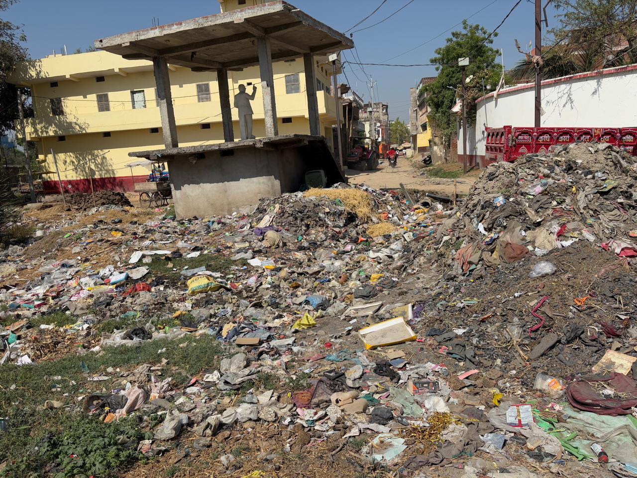 नगर पंचायत में सफाई की जिम्मेदारी दो एनजीओ को दी गयी हैफोटो 1-वार्ड 11 में थाने के समीप मुहल्ले में लगा कूड़े का ढेर.