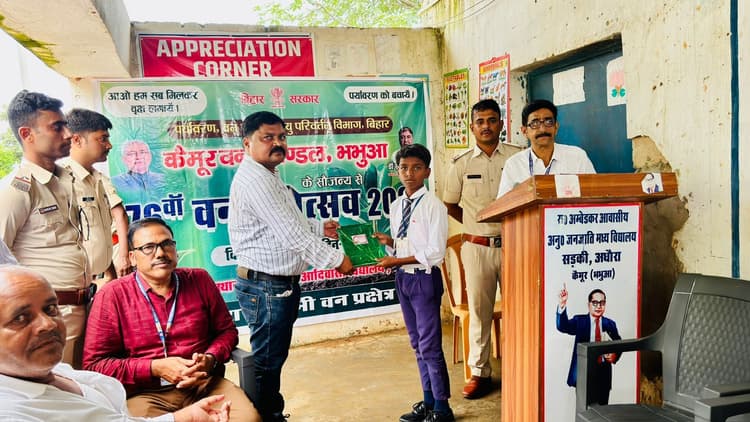 प्रखंड के राजकीय अनुसूचित जनजाति आवसिय मध्य विद्यालय, सड़की के परिसर में 76वां वन महोत्सव मनाया गया. स्कूल के छात्रों ने पौधारोपण किया. वन विभाग की ओर से बच्चों के बीच चित्रकला प्रतियोगिता आयोजित की गयी. बच्चों को रेंजर मंटू कुमार ने प्रशासित प्रमाण पत्र देकर पुरस्कृत भी किया गया. वहीं, रेंजर मंटू कुमार ने सभी अभिभावक व छात्रों से कहा कि एक-एक फलदार पौधा उगाएं, वन विभाग के नर्सरी में उपलब्ध है. पौधारोपण करने के बाद उसे सिंचाई भी करें. पेड़ ही जीवन है, अगर पेड़-पौधा नहीं रहेगा, तो बहुत कठिनाई झेलनी पड़ेगी. कहा कि जंगल में जो सुरक्षित पौधे लगे हैं, उसे भी बचाने का काम करें. इस अवसर पर वनपाल प्रिंस राज कुमार, वनरक्षी आकांक्षा कुमारी, बॉबी कुमारी, रोबिन कुमार, कृष्णा ठाकुर, दिलीप कुमार, पूर्व मुखिया नागेंद्र सिंह यादव आदि मौजूद थे.डिस्क्लेमर: यह प्रभात खबर समाचार पत्र की ऑटोमेटेड न्यूज फीड है. इसे प्रभात खबर डॉट कॉम की टीम ने संपादित नहीं किया है