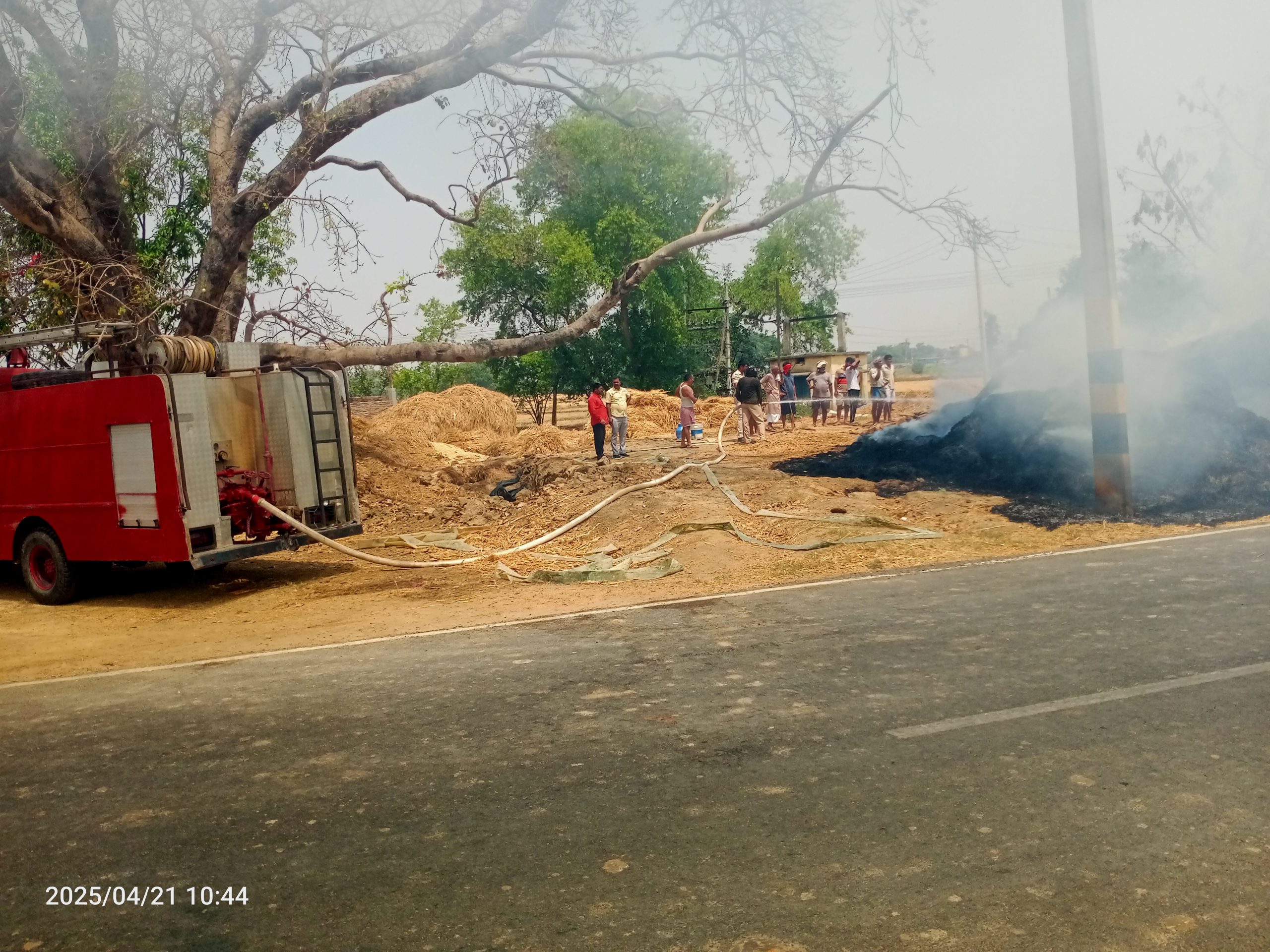 प्रखंड क्षेत्र के मनोहरपुर गांव के एक खलिहान में सोमवार की सुबह 10 बजे आग लग गयी. आग की उठतीं लपटें देख आसपास के लोग आवाज लगाते हुए उसे बुझाने का प्रयास करने लगे. लेकिन, नजदीक में पानी का अभाव था. बिजली कटी थी. इससे मोटर पंप नही चला और आग बेकाबू होने लगी. ग्रामीणों ने घटना की सूचना राजस्व कर्मी को दी. राजस्व कर्मी घटना की सूचना अग्निशमन विभाग को दी. साथ ही खुद मनोहरपुर पहुंच कर आग लगने की घटना का जायजा लिया. इधर, अग्निशमन फौरन पहुंचकर आग को बुझा दिया. वहीं, संयोग अच्छा रहा कि हवा का रूख तेज नही था. इसके कारण ग्रामीणों व अग्निशमन विभाग की तत्परता से आग आगे नहीं बढ़ पायी. बगल में रखे गये गेहूं के बोझे व अन्य पशुओं के चारे को बचा लिया गया. इस घटना में यमुना दुबे व धनंजय दूबे द्वारा खलिहान में रखे गये पशुओं का चारा जलकर राख हो गया. मौके पर मौजूद ग्रामीणों के बीच घटनास्थल पर पहुंचे राजस्व कर्मी शुभ्रांशु मिश्रा ने मामले की तहकीकात की.डिस्क्लेमर: यह प्रभात खबर समाचार पत्र की ऑटोमेटेड न्यूज फीड है. इसे प्रभात खबर डॉट कॉम की टीम ने संपादित नहीं किया है