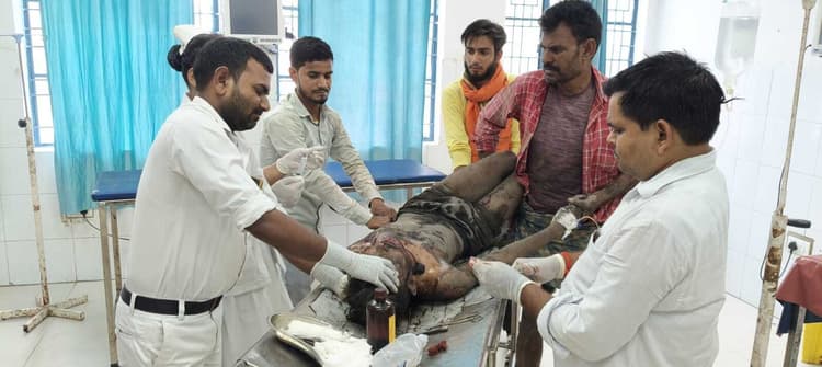 भभुआ सदर. सोमवार को भगवानपुर थाना क्षेत्र के शाहपुर गांव के समीप भैंस चराने के दौरान एक चरवाहा खेत के बीच झूलते करेंट प्रवाहित 11 हजार तार की चपेट में आ गया. करेंट प्रवाहित तार में चरवाहे का गर्दन फंसने से वह बुरी तरह से झुलस गया. गंभीर हालत में इलाज के लिए चरवाहे युवक को भगवानपुर सीएचसी से सदर अस्पताल लाया गया, जहां उसकी हालत गंभीर देख इमरजेंसी में तैनात डॉ अभिलाष चंद्रा ने हायर सेंटर रेफर कर दिया. 11 हजार करेंट प्रवाहित तार की चपेट में आया युवक भगवानपुर थानाक्षेत्र के उमापुर गांव निवासी बनारसी यादव का 22 वर्षीय बेटा अंगद यादव बताया जाता है. परिजनों ने बताया कि युवक सोमवार सुबह अपनी भैंस लेकर शाहपुर गांव की ओर चराने ले गया था. इसी दौरान सुबह 9 बजे अचानक चर रही भैंस भागने लगी, तो उन्हें रोकने के लिए युवक भी उनके पीछे दौड़ पड़ा. दौड़ने के दौरान ही अचानक झुके हुए पोल से लटक रहे 11 हजार करेंट प्रवाहित तार में उसकी गर्दन फंस गयी और युवक हाइवोल्टेज करेंट की चपेट में आकर बुरी तरह से झुलस गया. इसके बाद जब लोगों के माध्यम से परिजनों को इसकी जानकारी हुई, तो आनन फानन में झुलसे युवक को इलाज के लिए भगवानपुर सीएचसी लाया गया, जहां से रेफर किये जाने के बाद सदर अस्पताल लाया गया. यहां से स्थिति गंभीर देख रेफर किये जाने बाद परिजन युवक को गंभीर हालत में इलाज के लिए वाराणसी लेकर गये हैं. = चरवाहे को चिंताजनक स्थिति में किया गया हायर सेंटर रेफर