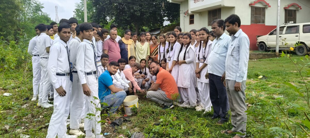 विद्यालय परिसर और पांच स्थानों पर लगाये गये पौधे