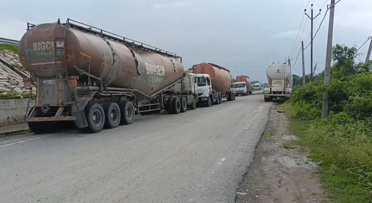 थाना क्षेत्र के भेरिया मोड़ के पास गुरुवार को परिवहन विभाग की टीम ने दुर्गावती पुलिस की मदद से सात ओवरलोड टैंकर पकड़े. सभी टैंकर खतरनाक केमिकल से लदे थे. बताया जाता है कि ये टैंकर भेरिया मोड़ स्थित एक फैक्ट्री में जा रहे थे. तभी लोगों ने परिवहन विभाग को सूचना दी. सूचना मिलते ही विभाग की टीम पुलिस के साथ मौके पर पहुंची और सातों टैंकरों को जब्त कर लिया. इसके बाद सभी टैंकरों को धर्मकांटा पर ले जाकर वजन कराया गया. इस दौरान एक टैंकर के चालक से करीब 70 हजार रुपये का जुर्माना वसूला गया. वहीं कुल सातों टैंकरों पर करीब पांच लाख रुपये का जुर्माना लगाया गया. थानाध्यक्ष गिरीश कुमार ने बताया कि पुलिस और परिवहन विभाग की संयुक्त कार्रवाई में ओवरलोड टैंकर पकड़े गये हैं. सभी टैंकरों पर नियम अनुसार कार्रवाई की गयी है .डिस्क्लेमर: यह प्रभात खबर समाचार पत्र की ऑटोमेटेड न्यूज फीड है. इसे प्रभात खबर डॉट कॉम की टीम ने संपादित नहीं किया है