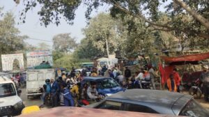 कुदरा-परसथुआ सड़क पर केवढ़ी पुल के पास लगा भीषण जाम